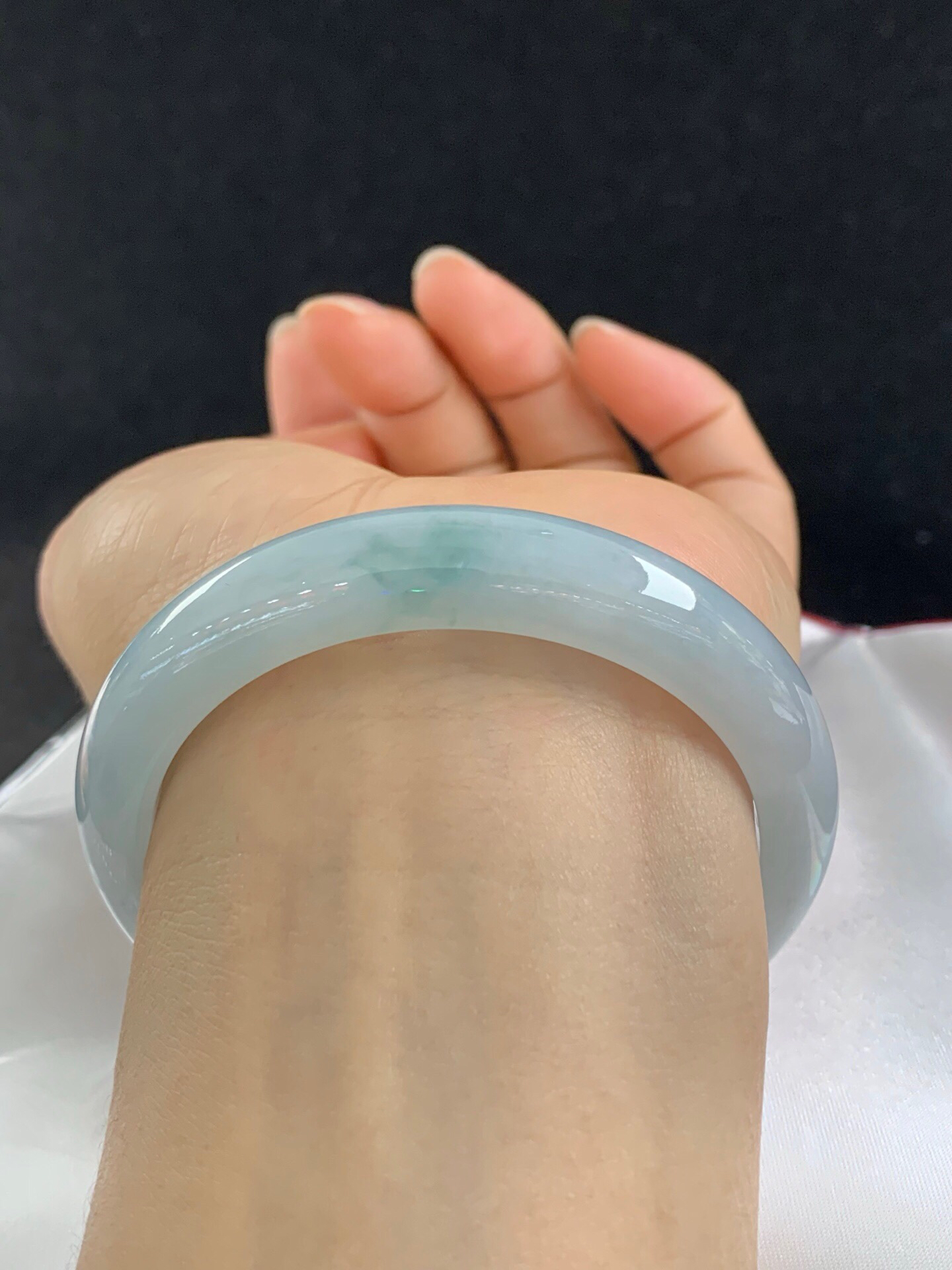 612713,56.7圈口,糯化飘花正圈平安镯,窄条秀气条形,淡底色飘花,整体清爽,完美无裂,尺寸:56.7-11.6-8.2,超值价💰11300 #优石客珠宝#香玉荟萃