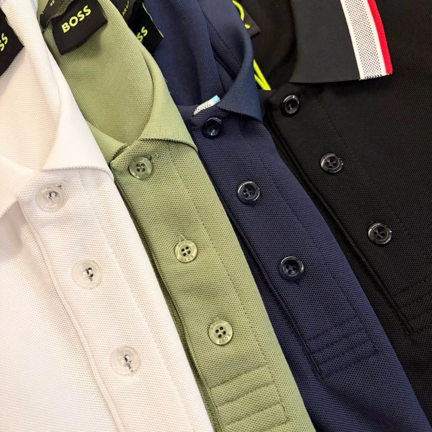 提花拼接polo衫|通勤休闲都能打,这件polo衫,把简约羔级感焊在了身上!精选透气珠地棉面料,软糯亲肤又挺括有型,夏天穿不闷汗,日常通勤、周末出游都适配。精典翻领+撞色条纹边设计,细节处藏着jing致感,左胸刺绣小logo低调彰显品味,不挑身材还能修饰身形,不管是搭西裤还是牛仔裤,都能轻松穿出利落气场。四色可选,满足不同风格需求,无论是商务场合还是休闲约会,都能让你从容得体。闭眼入的百搭款,衣橱里必须有一件!