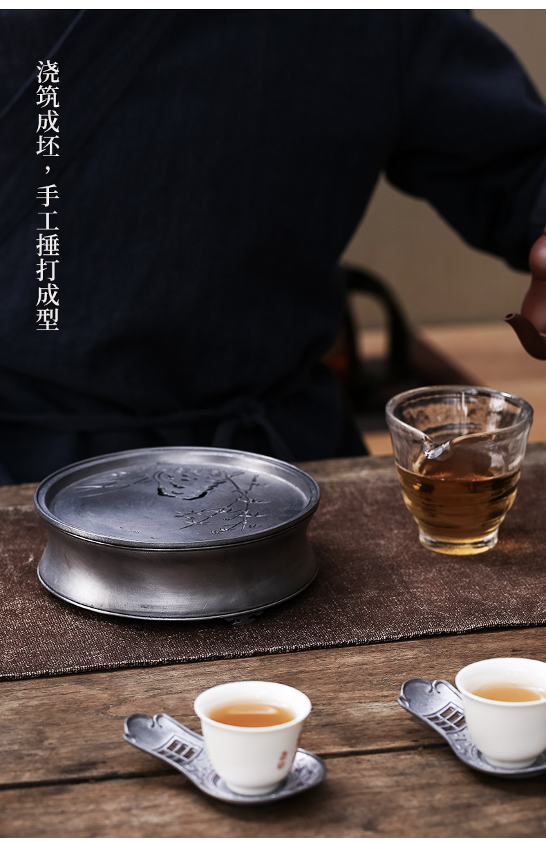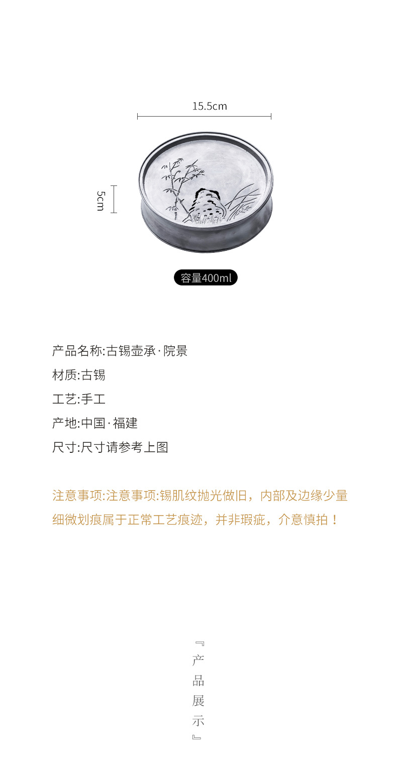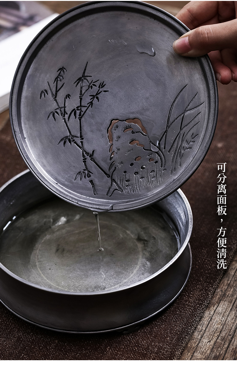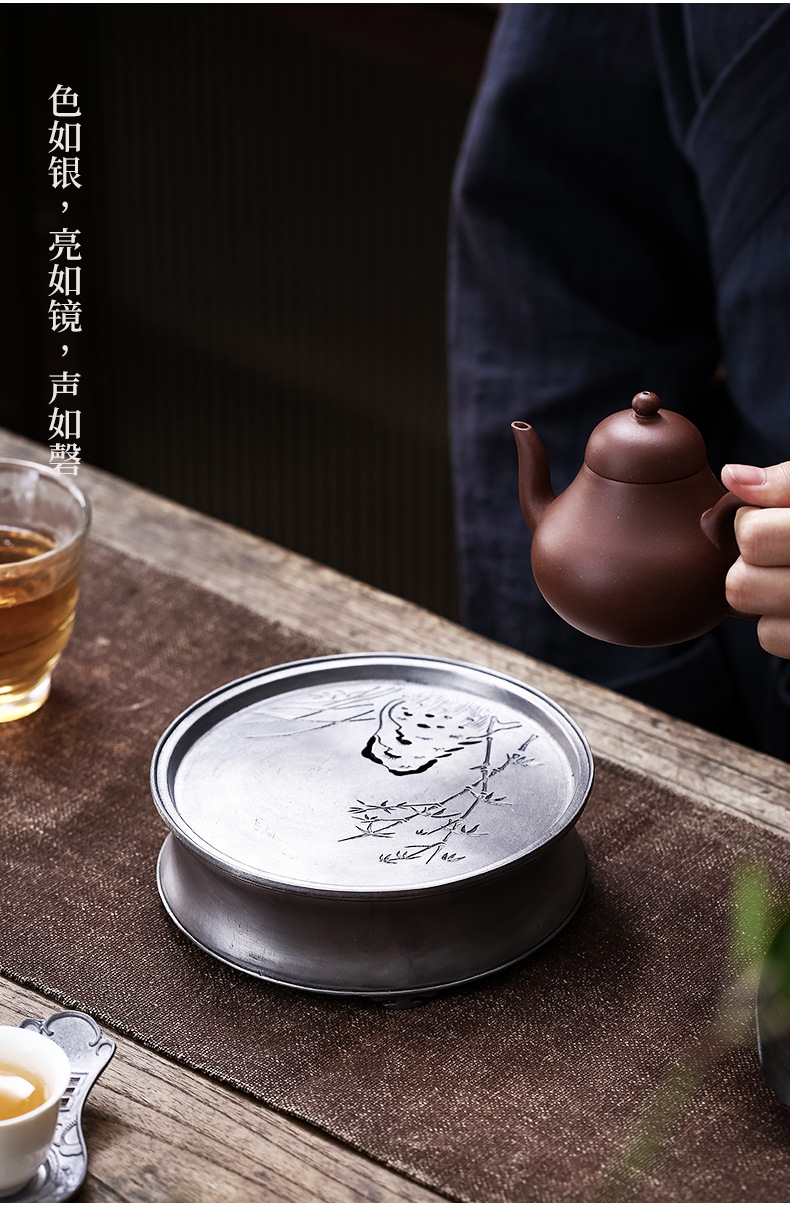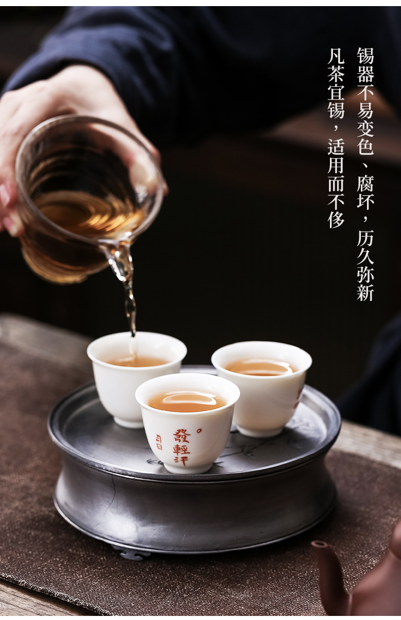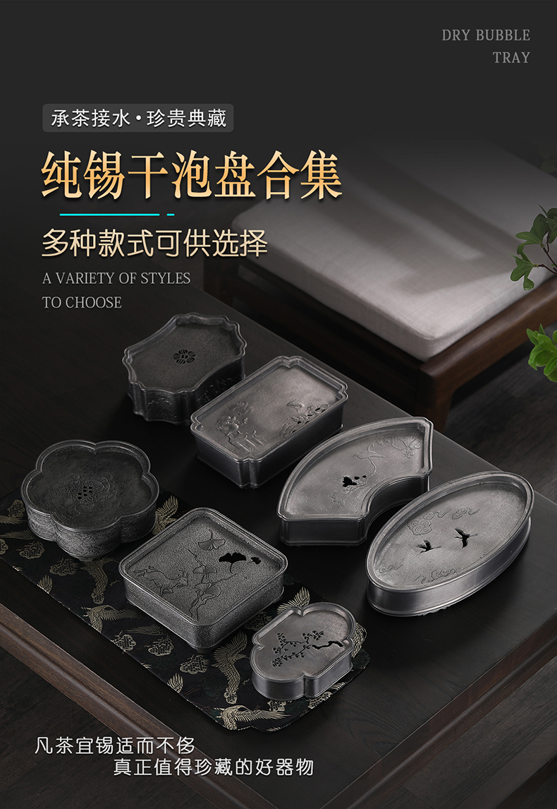 永利汇干泡台茶盘家用储水小型养壶托复古老锡茶台壶承建水茶承杯垫茶托