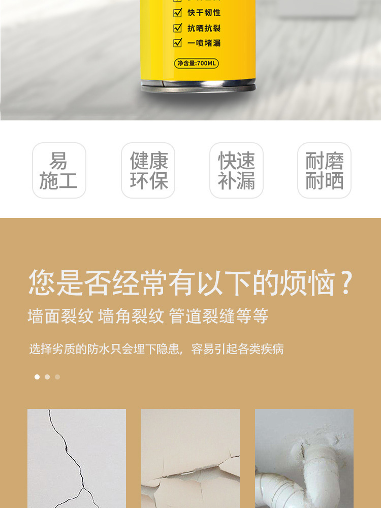 屋顶补漏外墙楼顶房顶聚氦酯喷剂防漏沥青堵王防水涂料 700ml