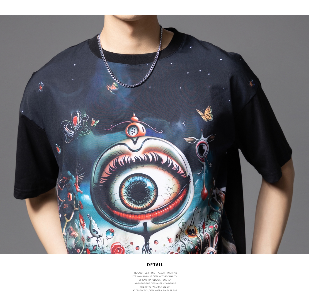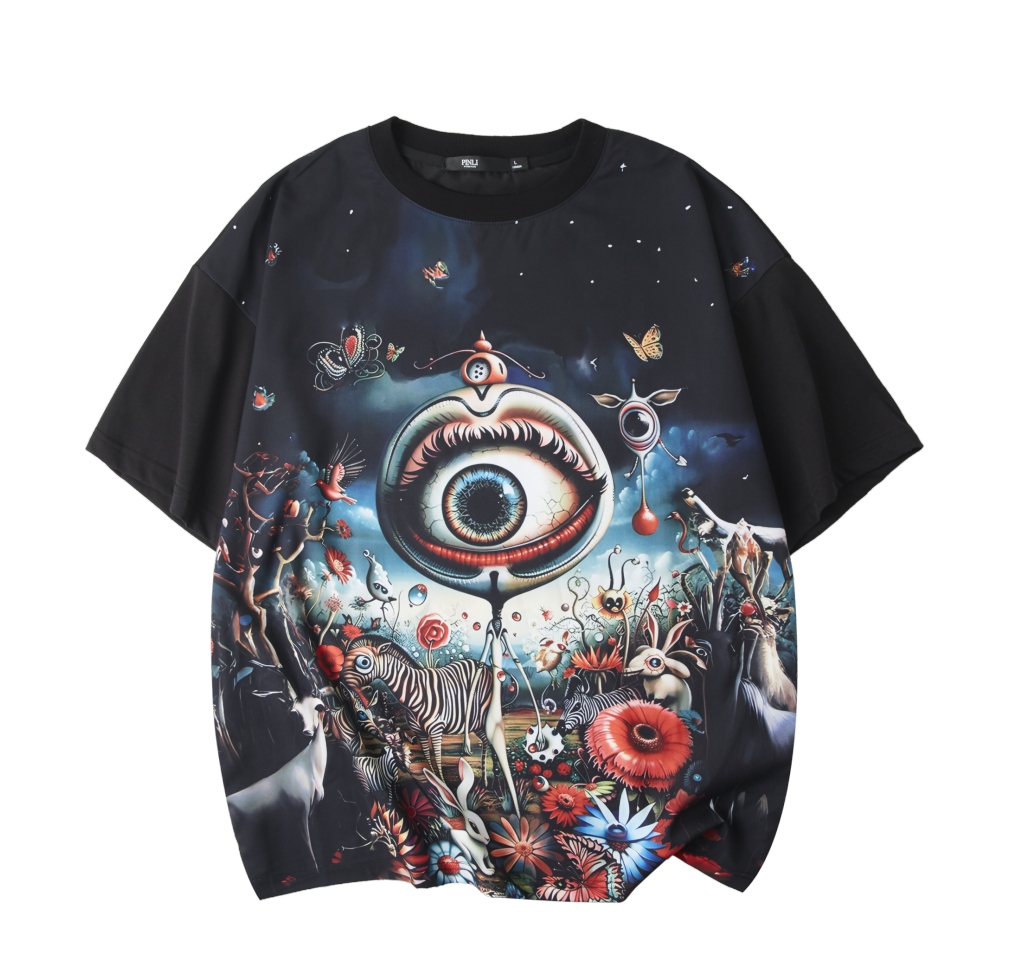 PINLI品立2025夏季新款国潮满印宽松短袖T恤美式男士休闲体恤上衣B252111081