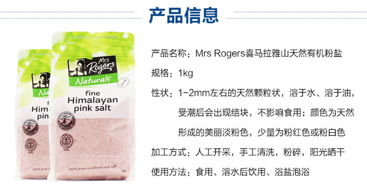 (永久下架)新西兰Mrs Rogers喜马拉雅 盐粉 1kg包装