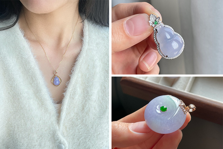 翡翠上的紫色,俗称“椿色”,深如紫罗兰,浅若烟霞朦胧,在翡翠中有“千金易求一绿,万金难寻一紫”。