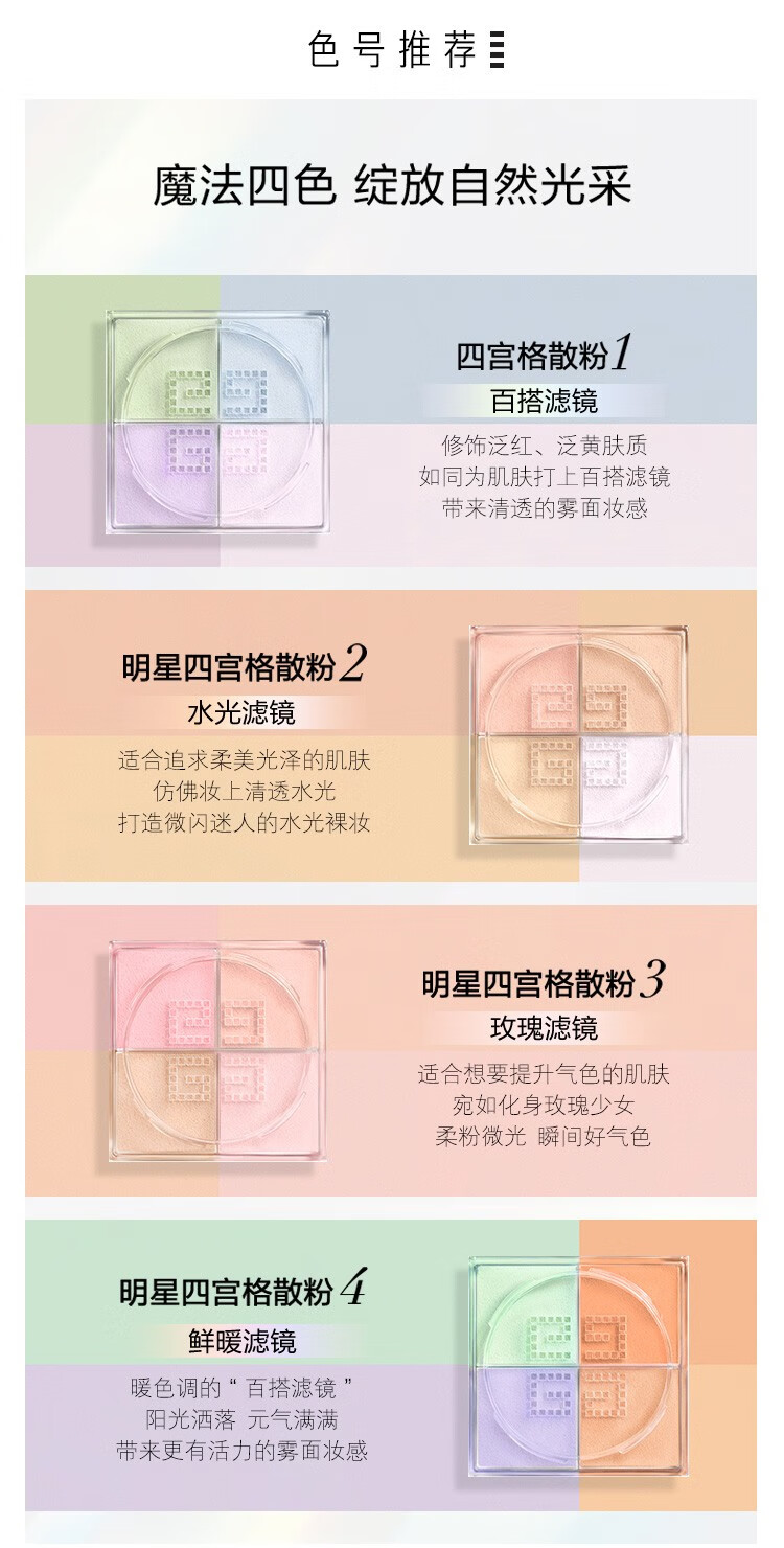 纪梵希四宫格散粉1号色4*3G+雅诗兰黛白金级奢宠光灿精华粉底液21SPF20/PA+++30ML冷调自然皮【HSZG10.0】