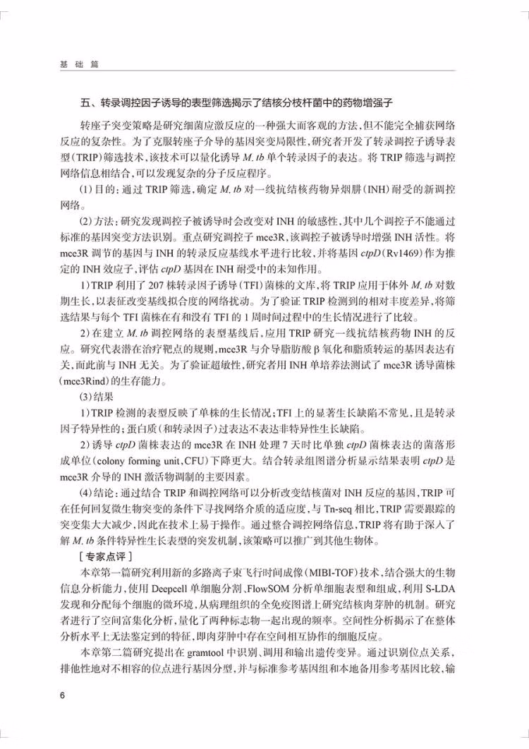 2021—2022年全球结核病研究领域学者做出了诸多努力,结核病基础、诊断、治疗、预防、数据健康与大数据等方面研究均有很多突破,给结核病防治科技工作者带来了很多的启发和思路,也为临床治疗带来了更多的希望。《结核病研究进展报告(2022)》由中国防痨协会组织专家编写,对2021—2022年在国际上发表的重要文献进行分析和解读,介绍全球结核病研究在新技术、新方法、新理念和新药物研发上的突破,采用文献总结和专家述评相结合的方式,通过专业的视角、凝练的语言对研究进展进行总结,提纲挈领,引领导航。 全书包含五篇,分别为基础篇、诊断篇、治疗篇、预防篇、数字健康与大数据篇。