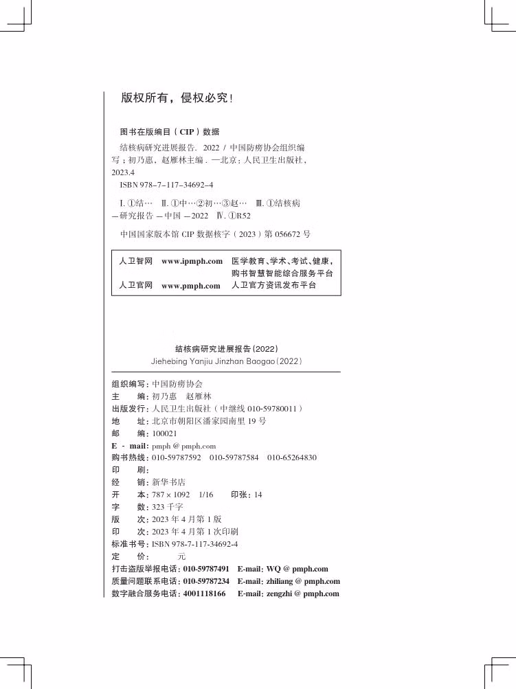 结核病研究进展报告(2022) 2023年4月参考书 9787117346924