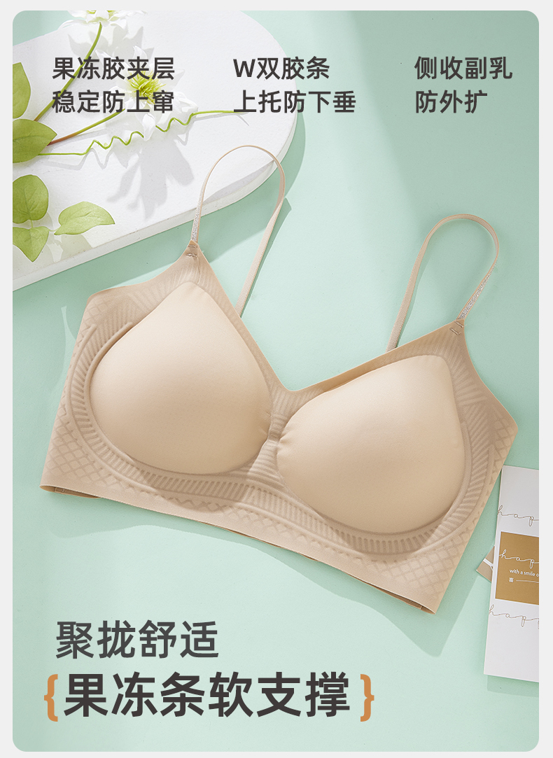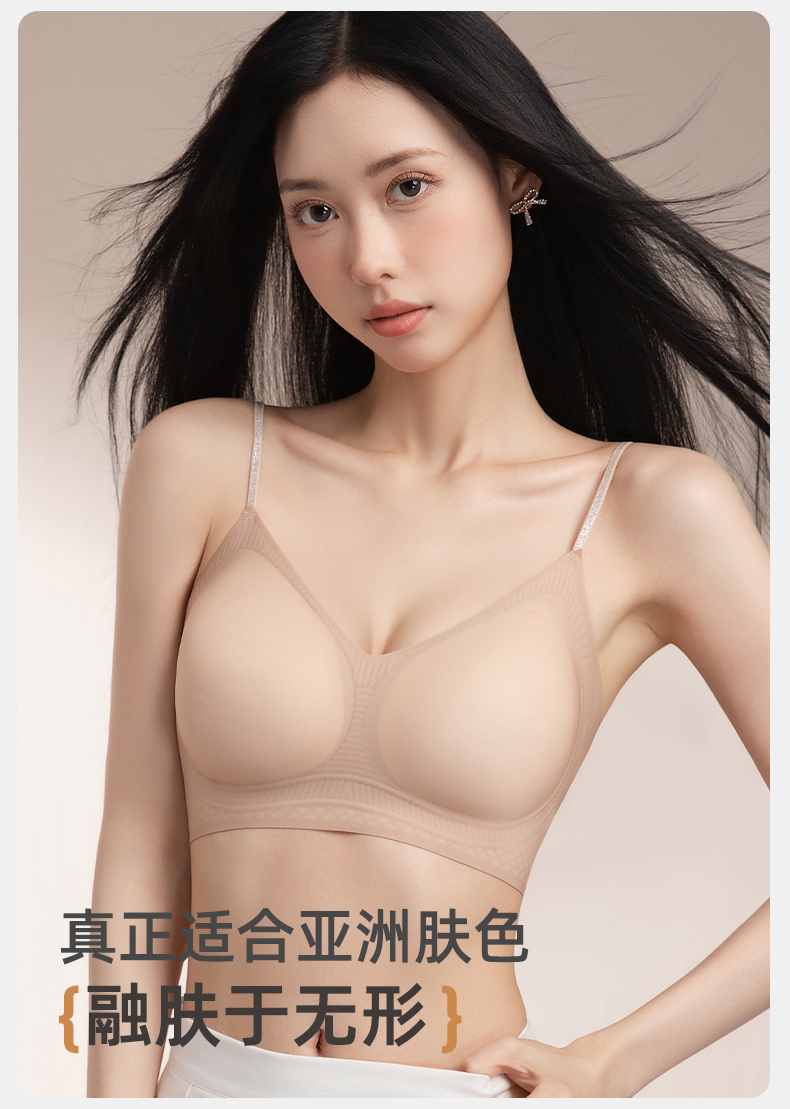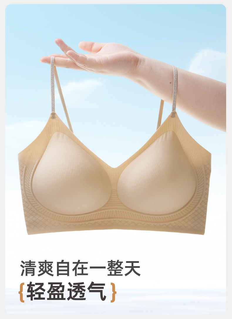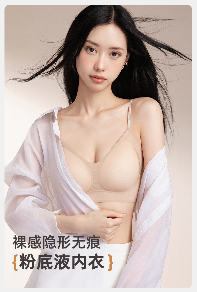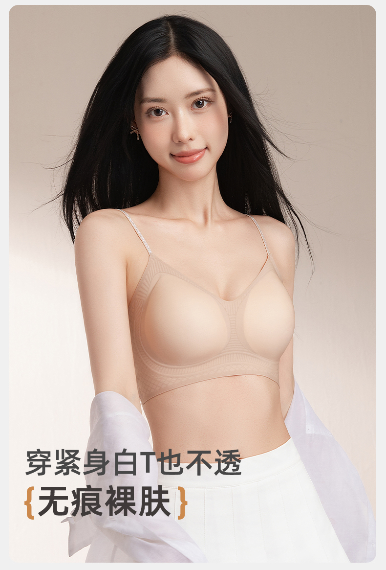 雅黛俪粉底液隐形无痕内衣细肩带一体背心文胸吊带小胸聚拢薄胸罩