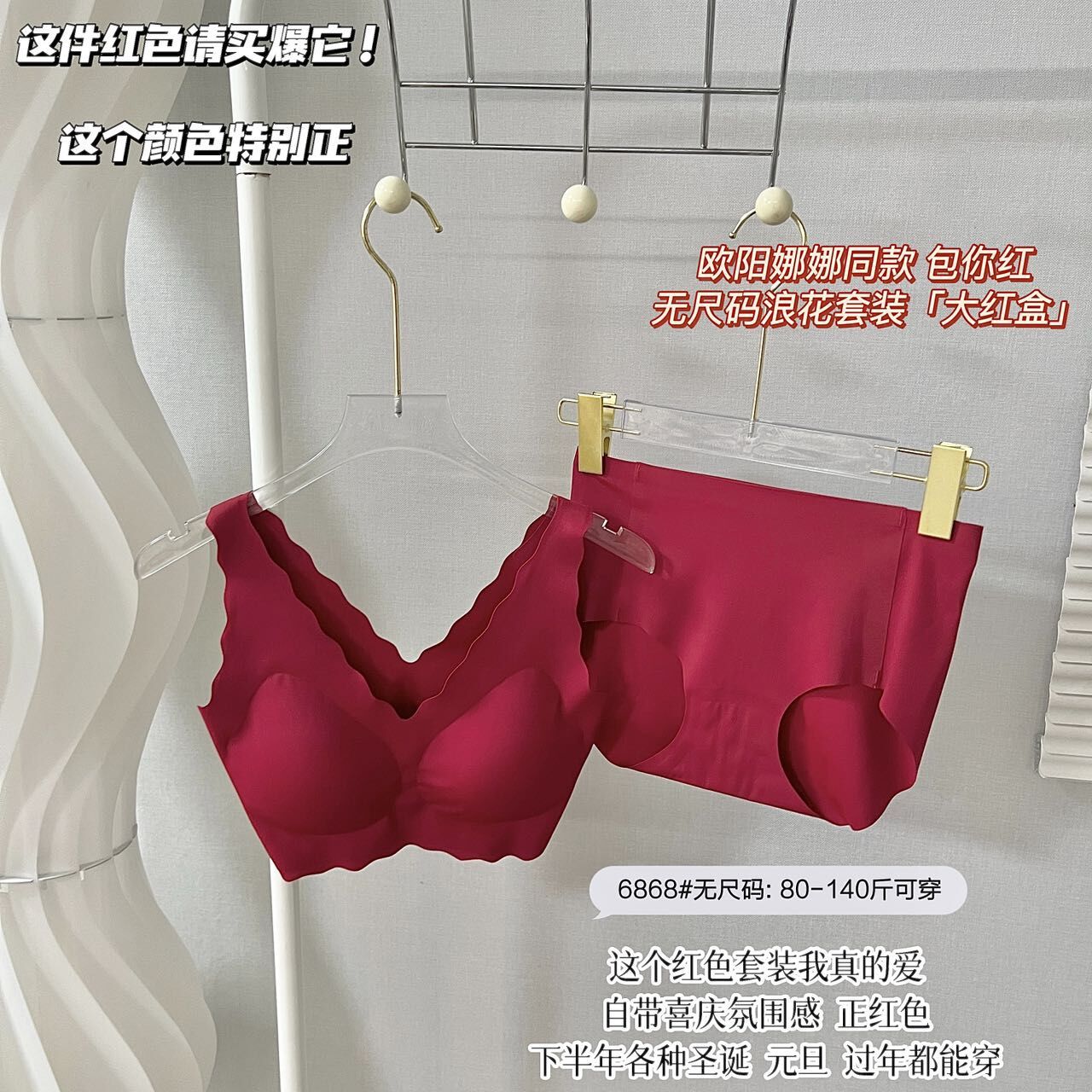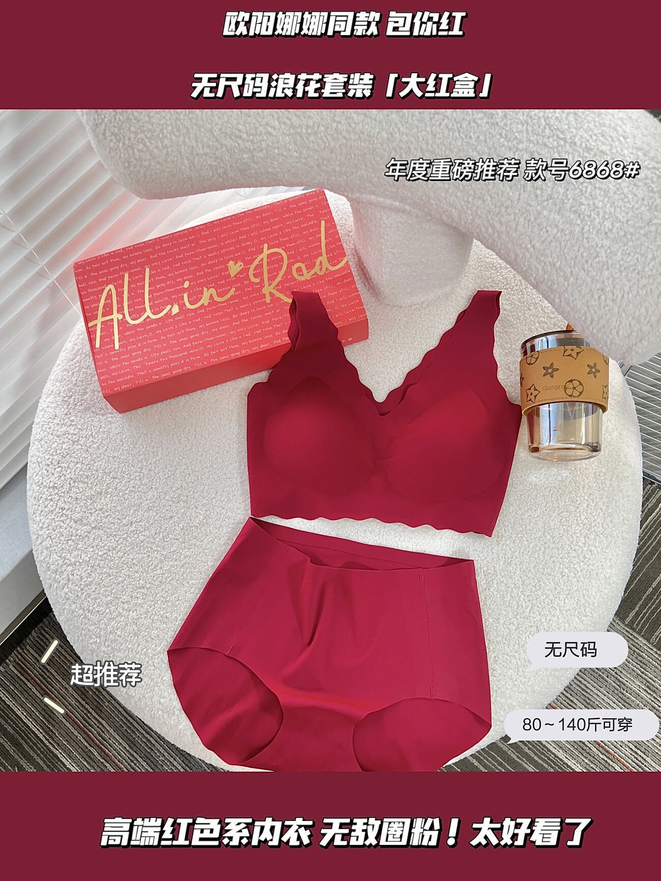 【纳福开运❗️转运内衣礼盒套装】幸运红,本命年、新年纳福开运,聚拢托胸收副乳防下垂,大红色女士无钢圈文胸内裤,过年春节新婚情人节礼物年货,小浪花套装红盒七夕家庭整理伴手礼新年礼盒年货礼盒