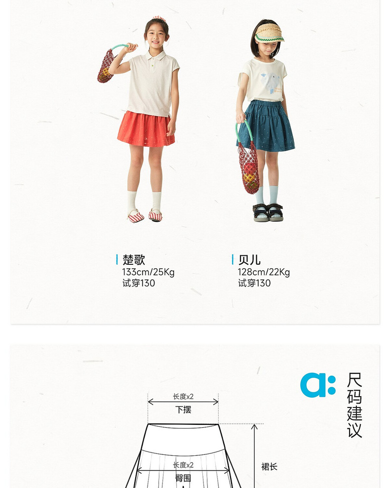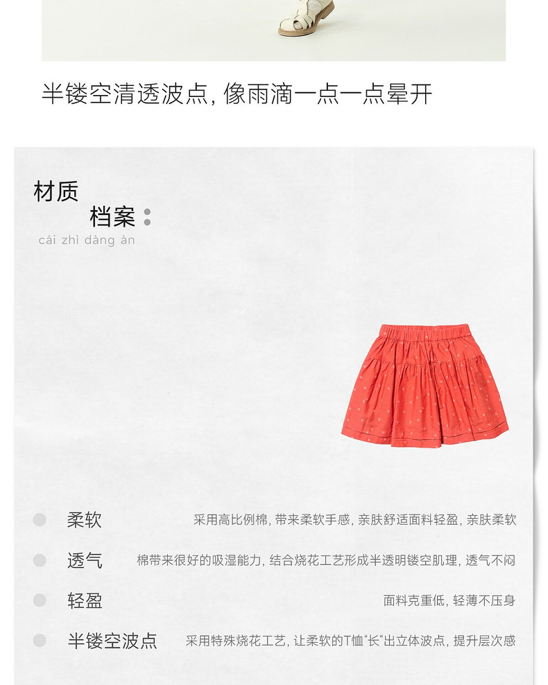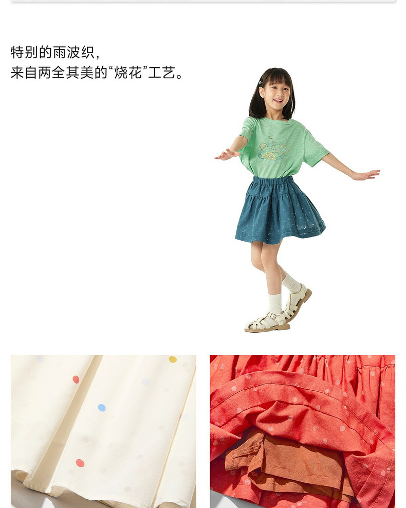 allblu幼岚【雨波织】儿童半裙26夏新品女童轻盈柔软透气
