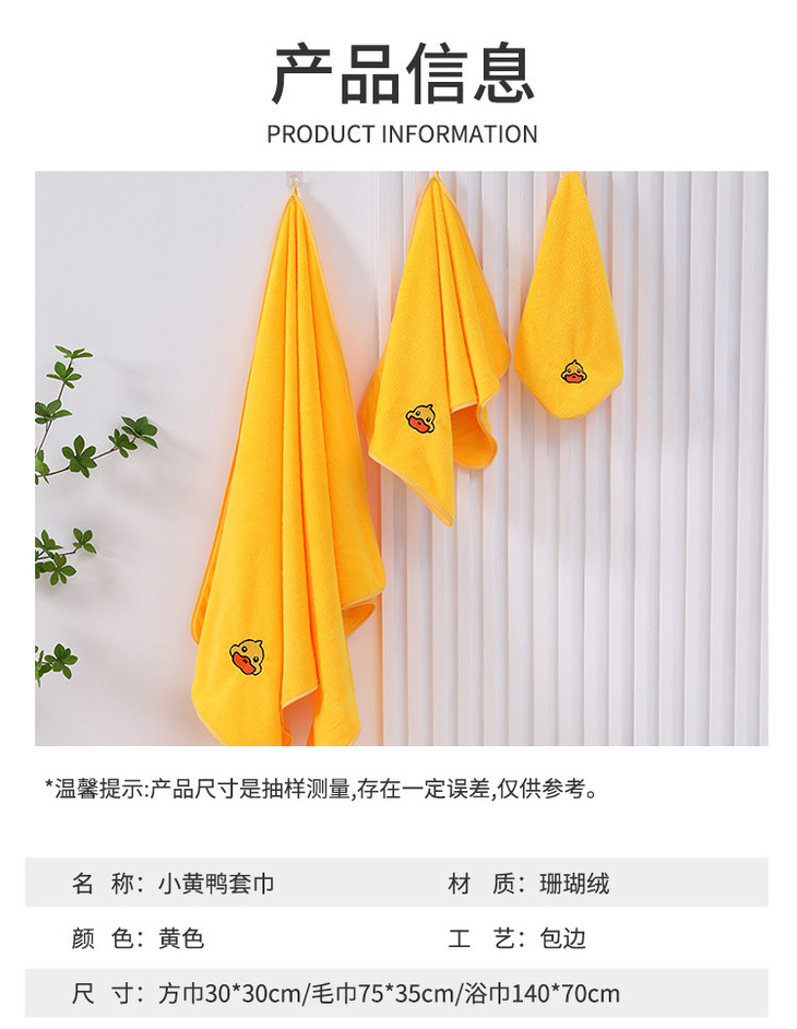 <有书独家>【云朵般柔软 呵护宝宝娇嫩肌肤】小黄鸭毛巾浴巾方巾洗脸巾幼儿园婴儿用品毛巾长方形方巾帕子