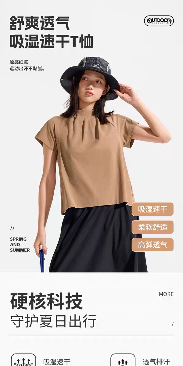【春上新】【8折】6楼OUTDOOR PRODUCTS新款户外吸湿速干半高领速干短袖 原价299折后价239