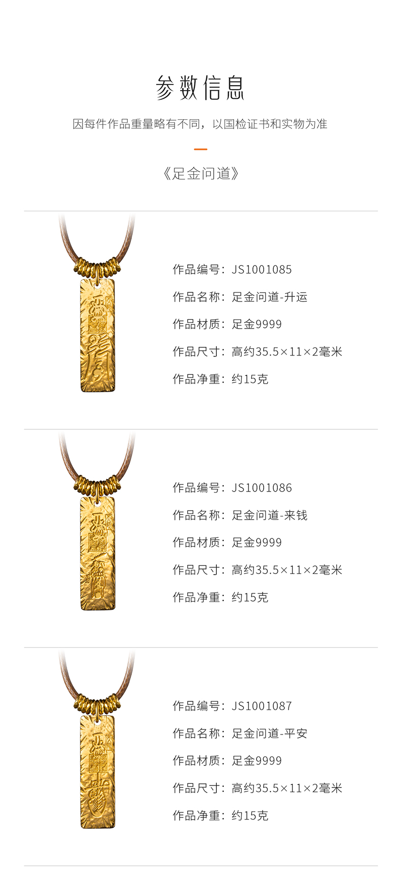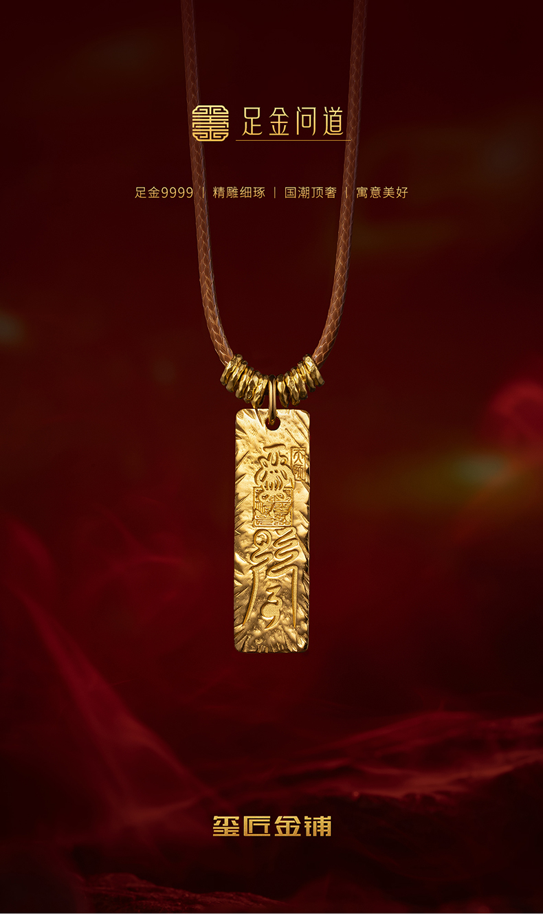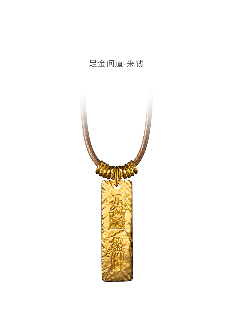 玺匠金铺《足金问道》足金9999 升运来钱平安黄金吊坠项链礼物