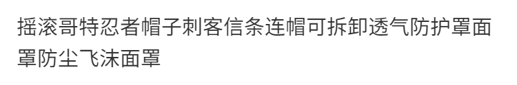 【防飞沫面罩帽】摇滚哥特忍者帽同款 连帽可拆卸透气防护罩面罩