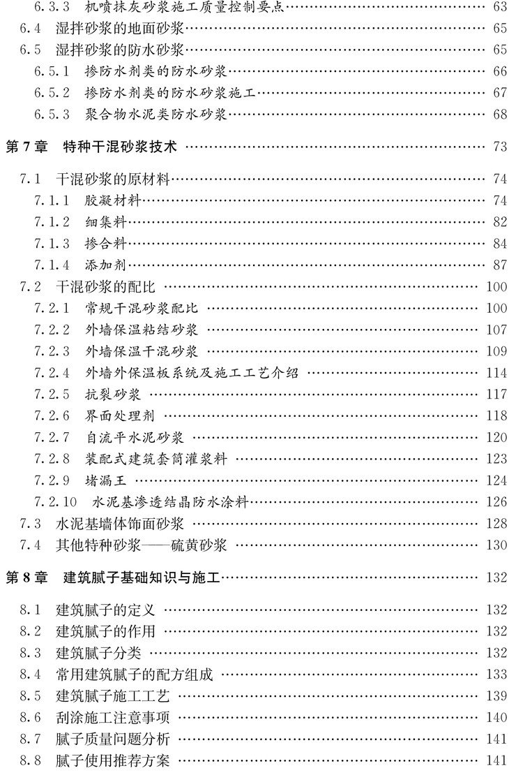 与预拌混凝土技术相比,预拌砂浆及其施工技术内涵更广、种类更多、施工工艺更复杂,对施工人员的素质要求更高,施工更需要精细化,这个行业更需要千千万万的大国工匠。预拌砂浆很明显也是一个半成品,它需要后续的良好的施工质量来体现预拌砂浆本身的质量。编者认为,预拌砂浆从生产到物流再到机械化喷涂施工一体化总承包,是当今和未来的发展趋势,也只有这样,才可能从根本上保证预拌砂浆生产、物流和施工的工程质量。当前,预拌混凝土行业越来越多的企业进入预拌砂浆行业,湿拌砂浆的发展如火如荼,大量的混凝土技术人员需要学习预拌砂浆的基础知识,希望本书可以起到抛砖引玉的作用,为促进预拌砂浆行业又好又快地发展尽一份绵薄之力。