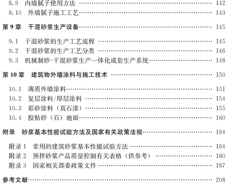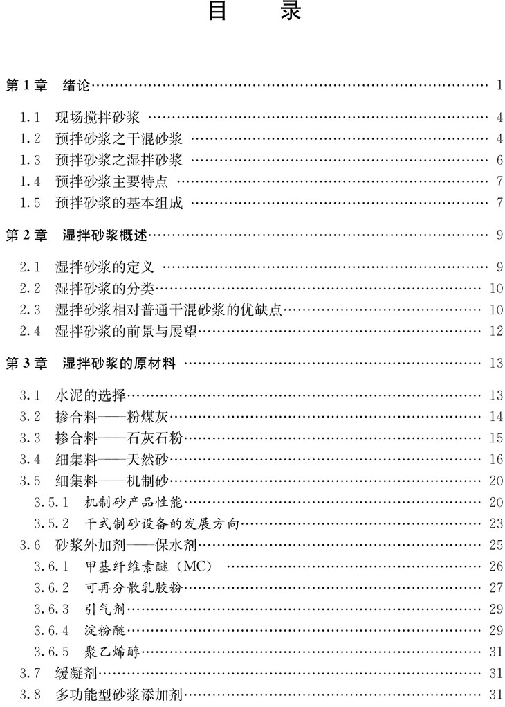 本书结合我国预拌砂浆行业发展及应用的实际情况,以湿拌砂浆、特种干混砂浆的配制、生产、物流与施工为主线,融合了建筑领域各种预拌砂浆的基本组成材料、配比设计、基本性质、生产设备、生产过程质量控制、施工工艺,是一本较全面、系统地介绍预拌砂浆基本原理、技术、设备、应用的专业技术参考书。本书内容共10章,包括绪论、湿拌砂浆概述、湿拌砂浆的原材料、湿拌砂浆的配合比设计与生产检测、湿拌砂浆的物流运输及储存、湿拌砂浆的砌筑与抹面施工、特种干混砂浆技术、建筑腻子基础知识与施工、干混砂浆的生产设备介绍、建筑物外墙涂料与施工技术。本书可作为高等院校土建材料类专业教材,作为砂浆材料、装备及质检等相关企业的培训资料,也可供预拌砂浆生产企业管理者、技术人员参考。