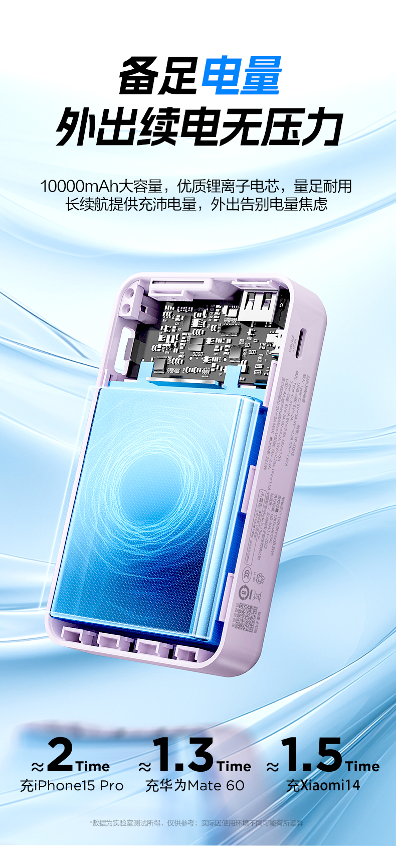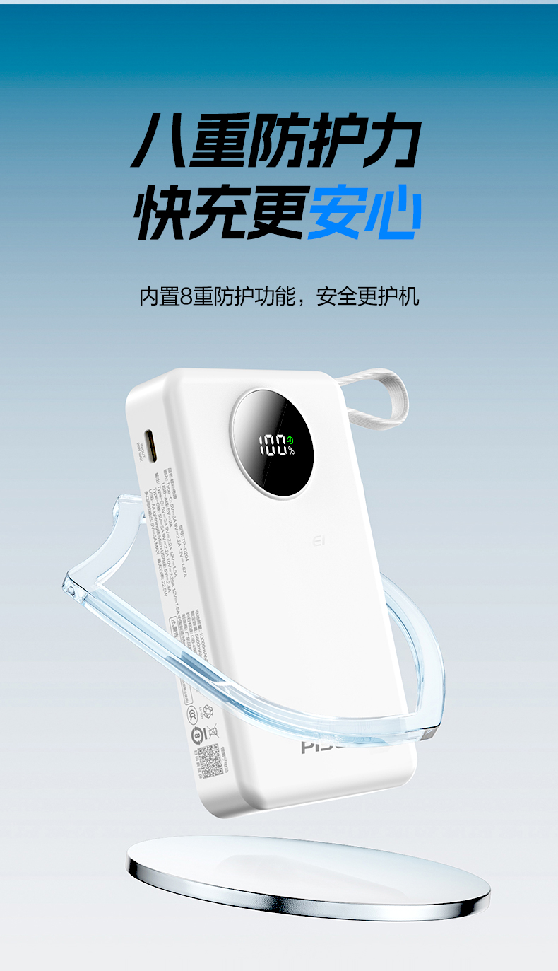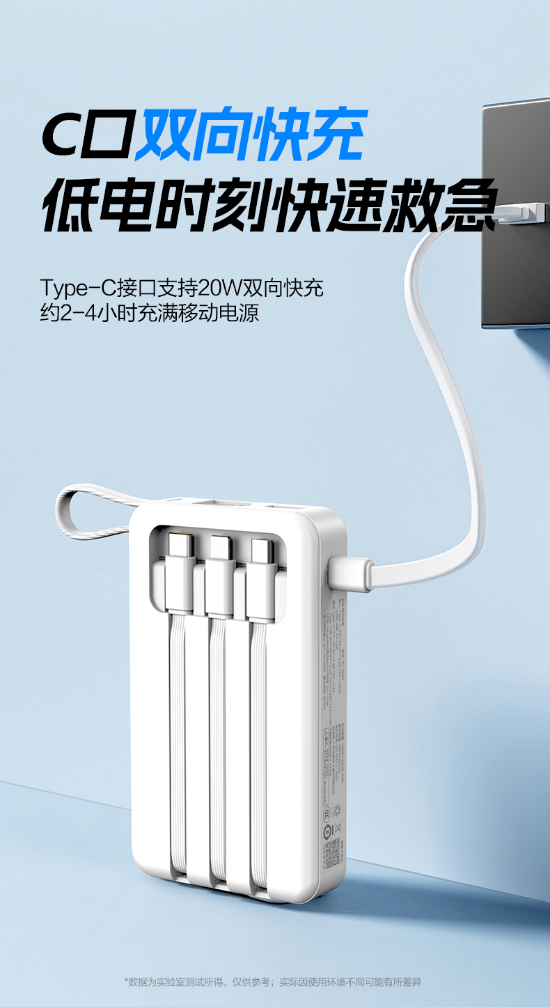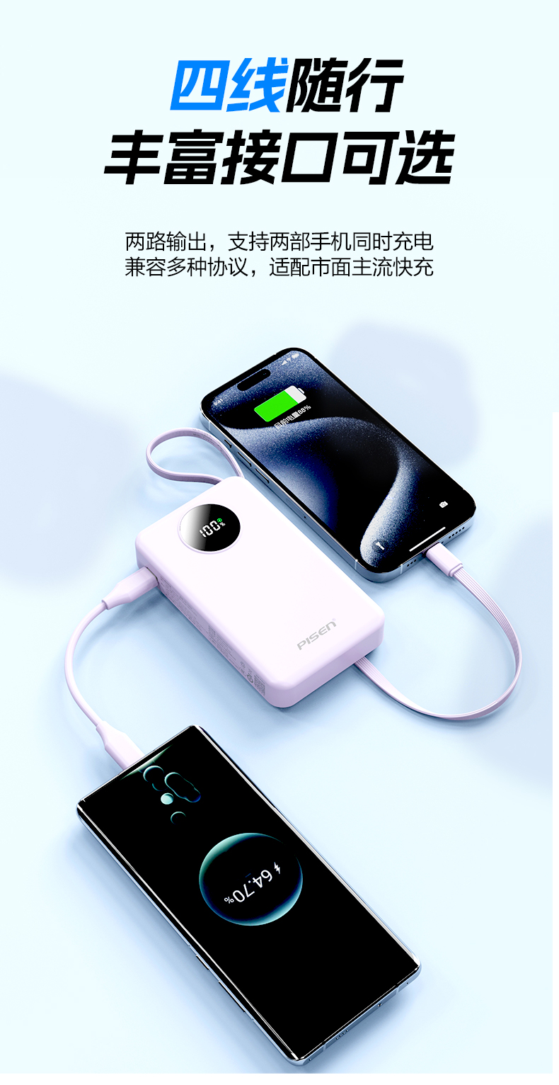 品胜 方块系列22.5W圆屏四线充电宝10000毫安 适用华为小米苹果手机支持PD快充移动电源