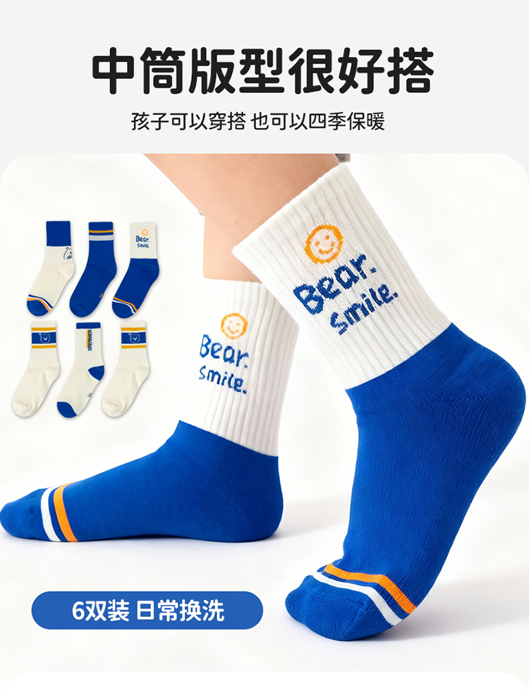 贝贝怡男童儿童袜(6双装)ZB3EP009