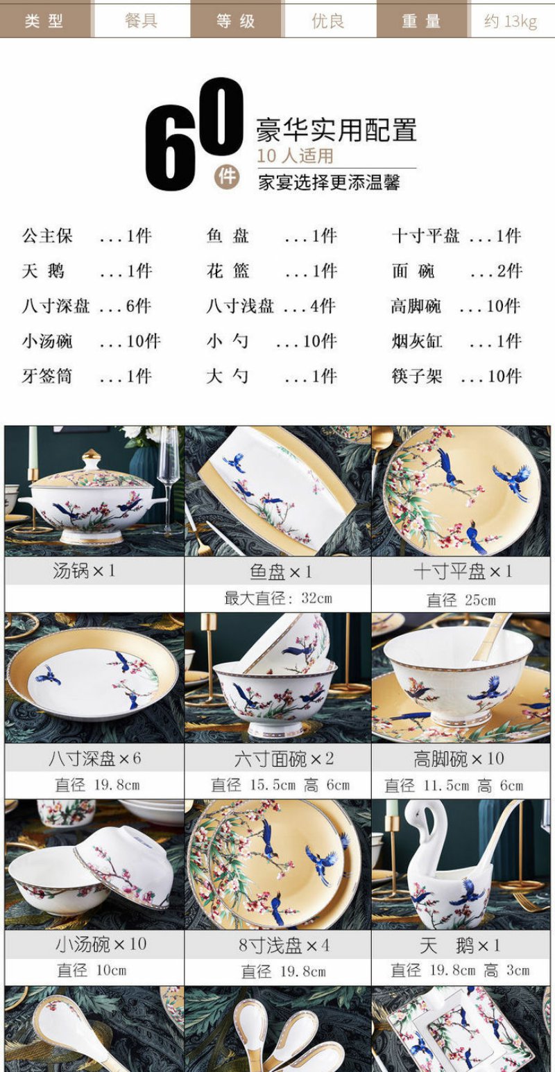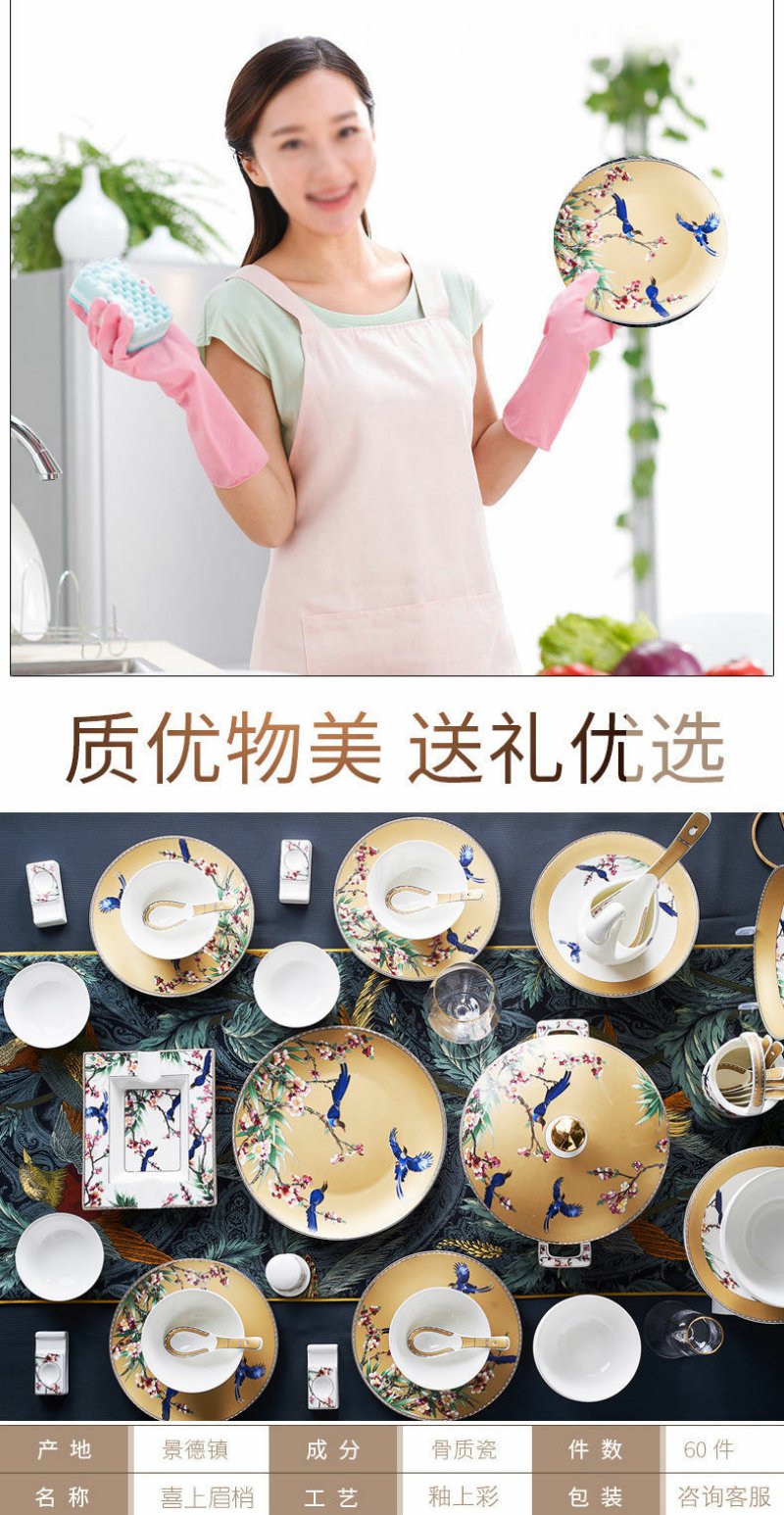 【喜上眉梢60头】景德镇陶瓷餐具宫廷华丽碗碟套装