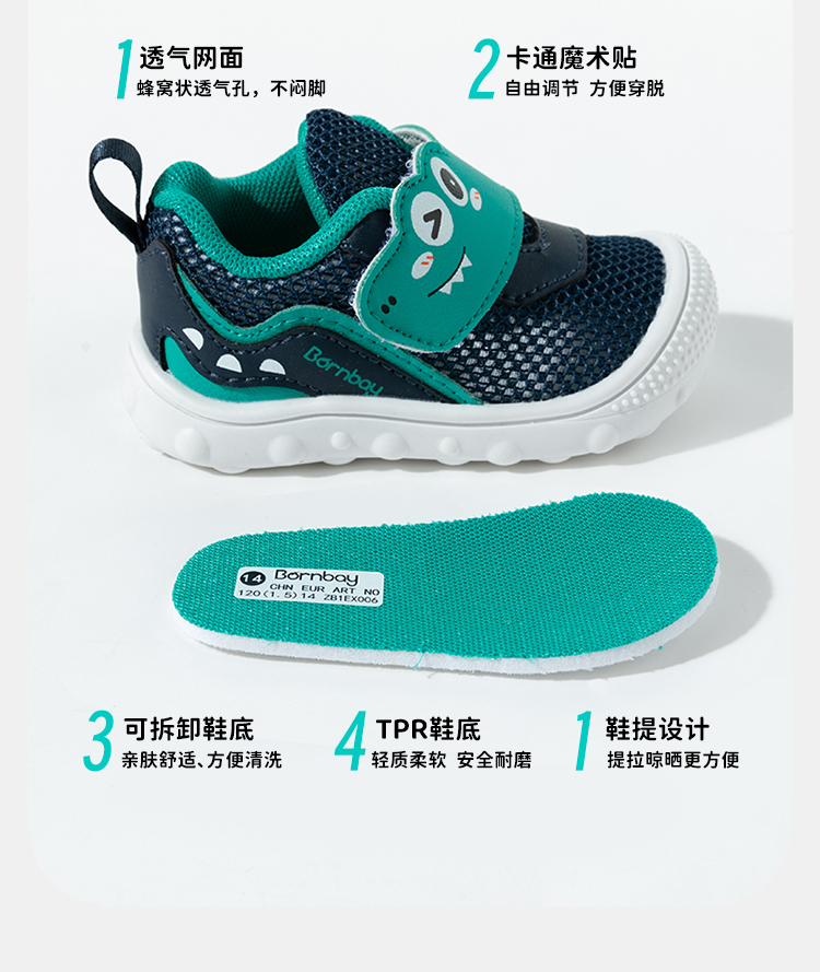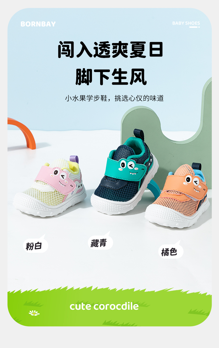 贝贝怡2025春秋新款男女宝宝学步鞋婴幼儿网眼透气稳步鞋包头休闲鞋ZB1EX006