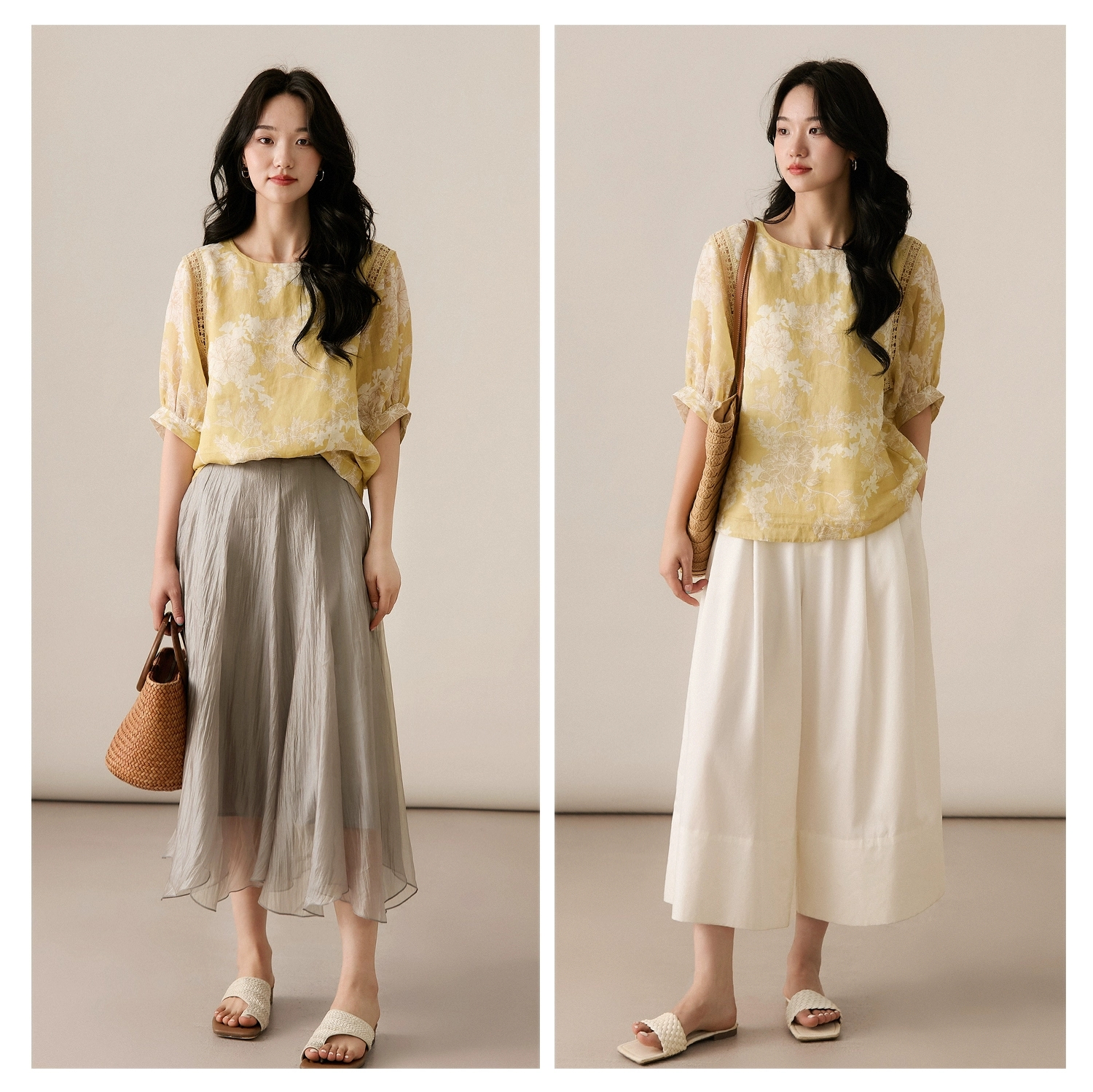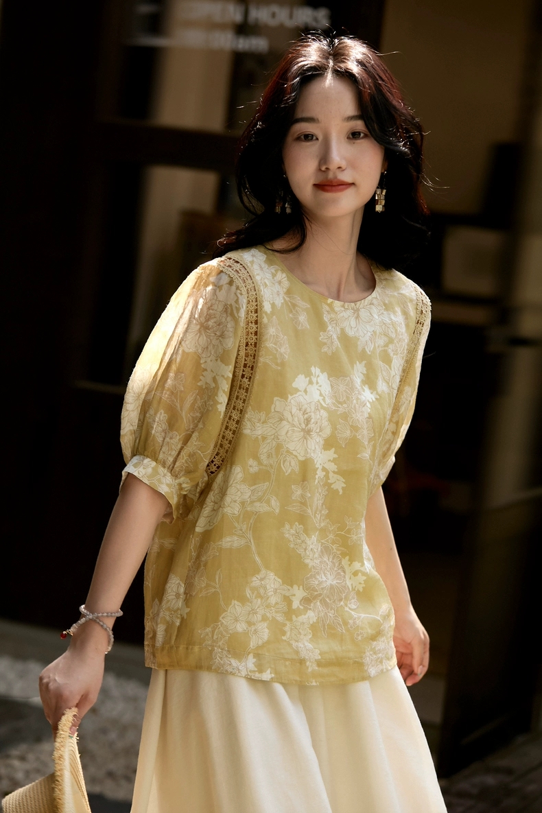 复古灯笼袖,有种随性慵懒的格调,五分袖长又能狠好的修饰手臂线条,