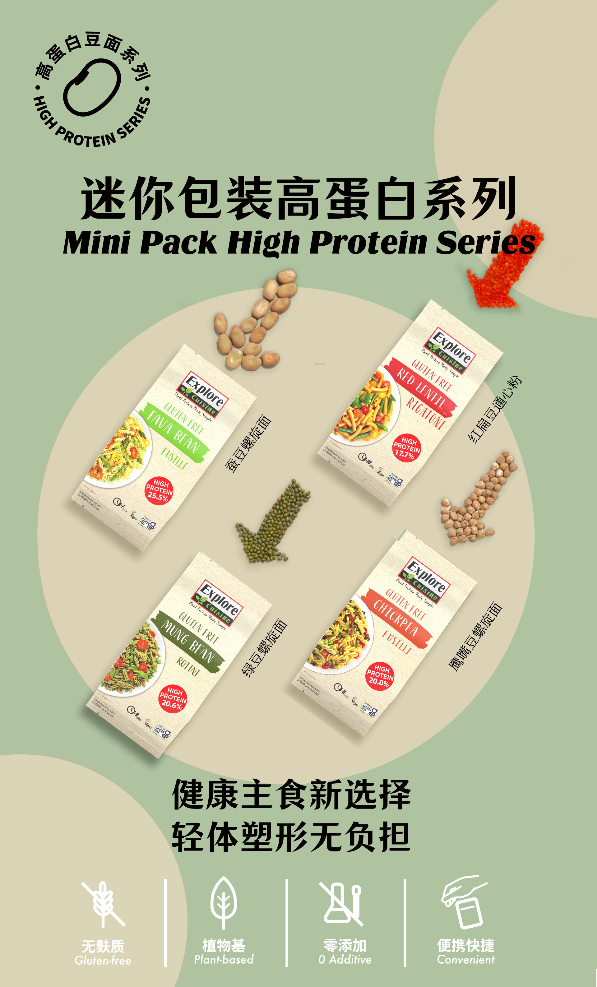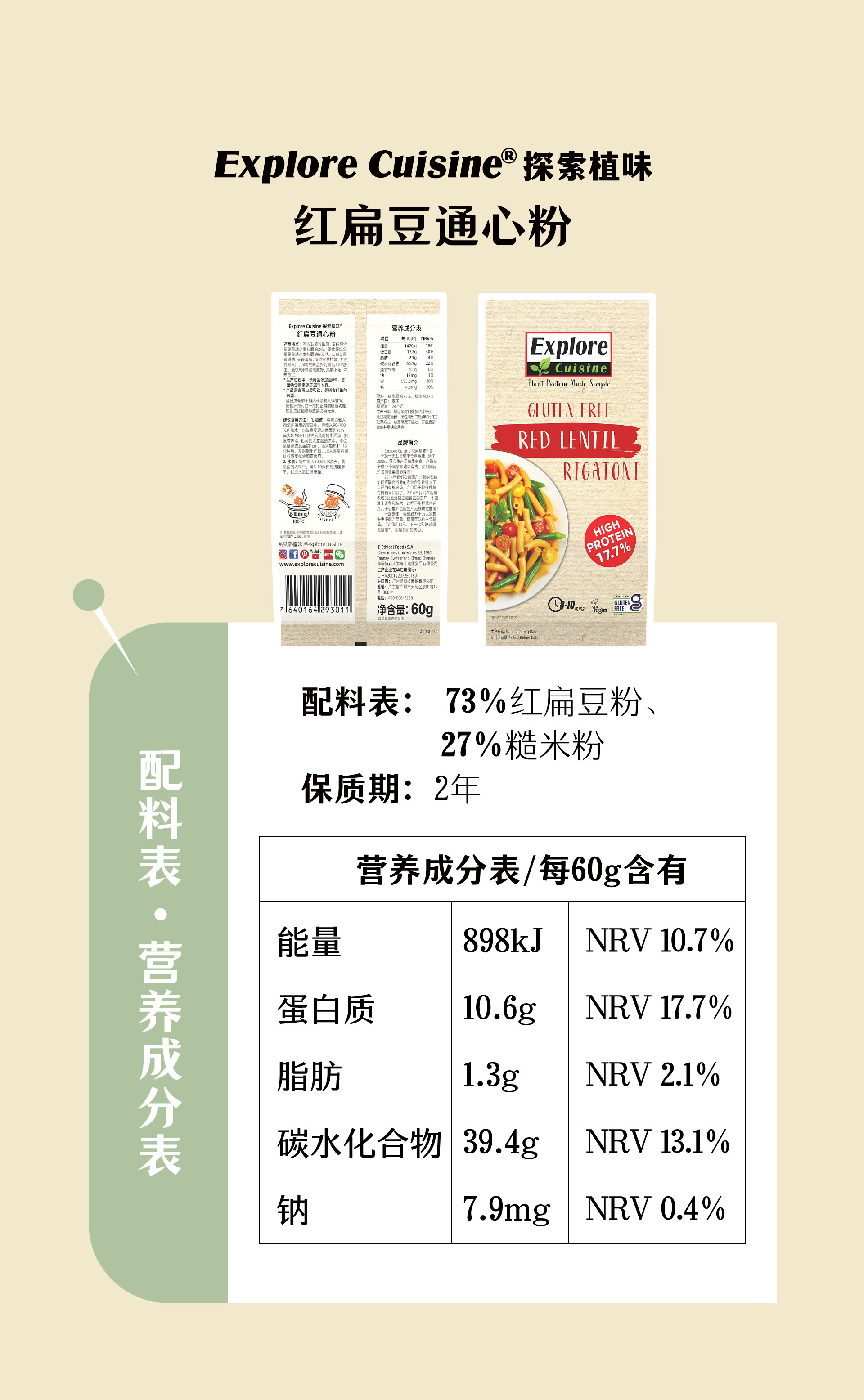 【云惜严选】有机红豆绿豆意面/螺旋面 无添加配料干净