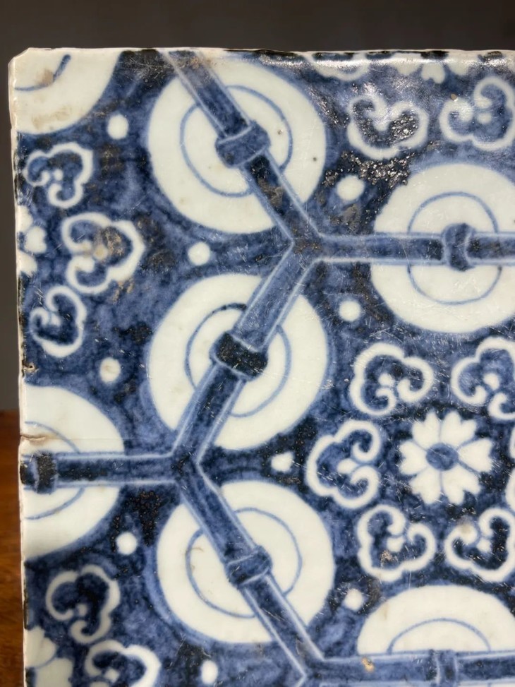 此早明风格青花绘六方框如意纹瓷板地砖,青花发色深蓝,渲染层次分明,构图典雅、绘艺精湛,瓷胎精致细腻,与明初永乐时期建大报恩寺时所使用的地砖之图案相似,前藏家已珍藏逾五十年,未经专家鉴定是否为明代永乐之物,《用之美》专栏以精美旧物与朋友们分享。
