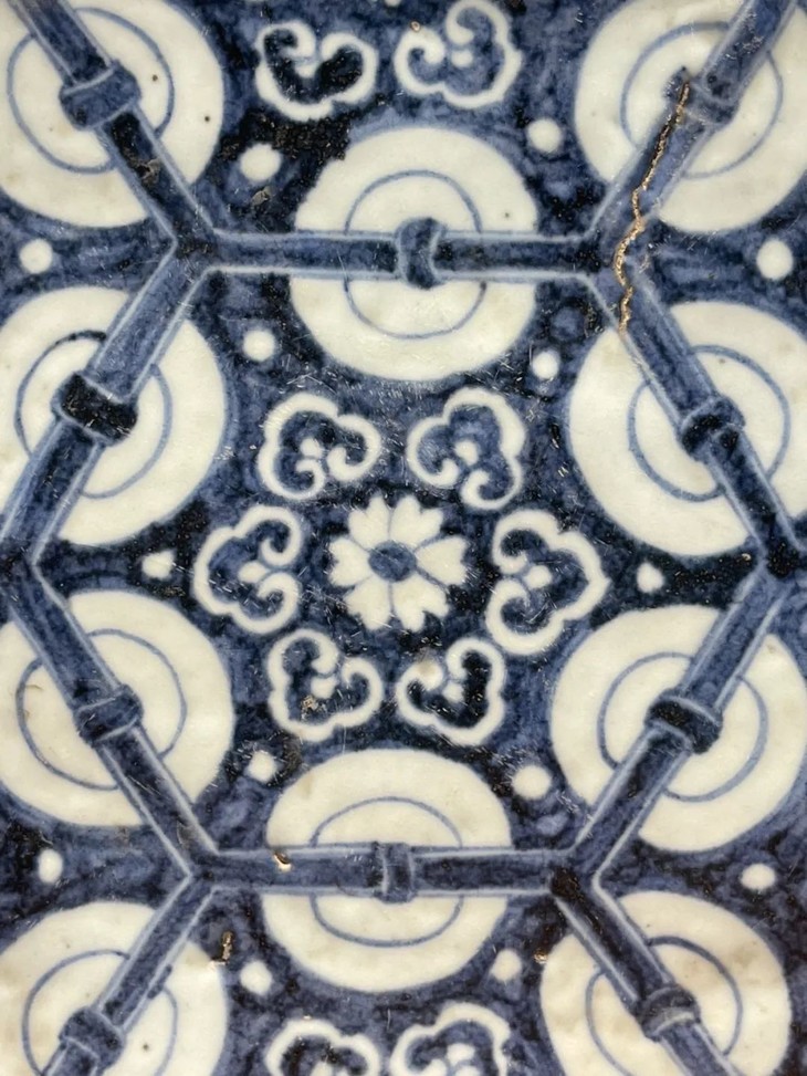 青花绘六方框如意纹瓷板地砖