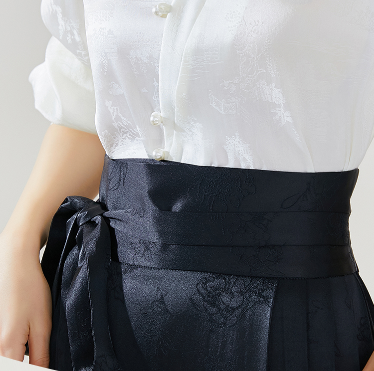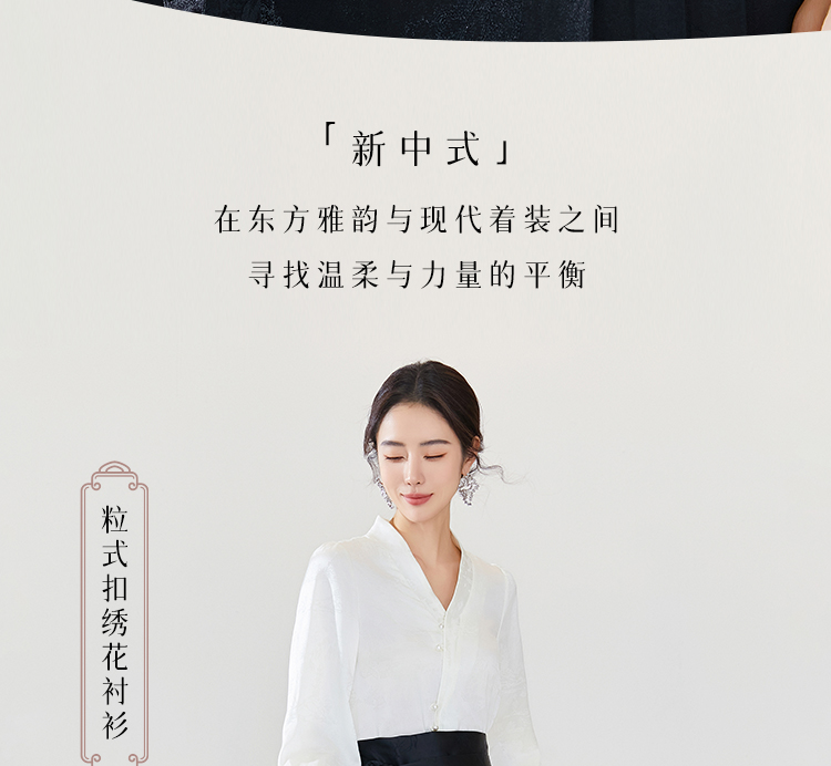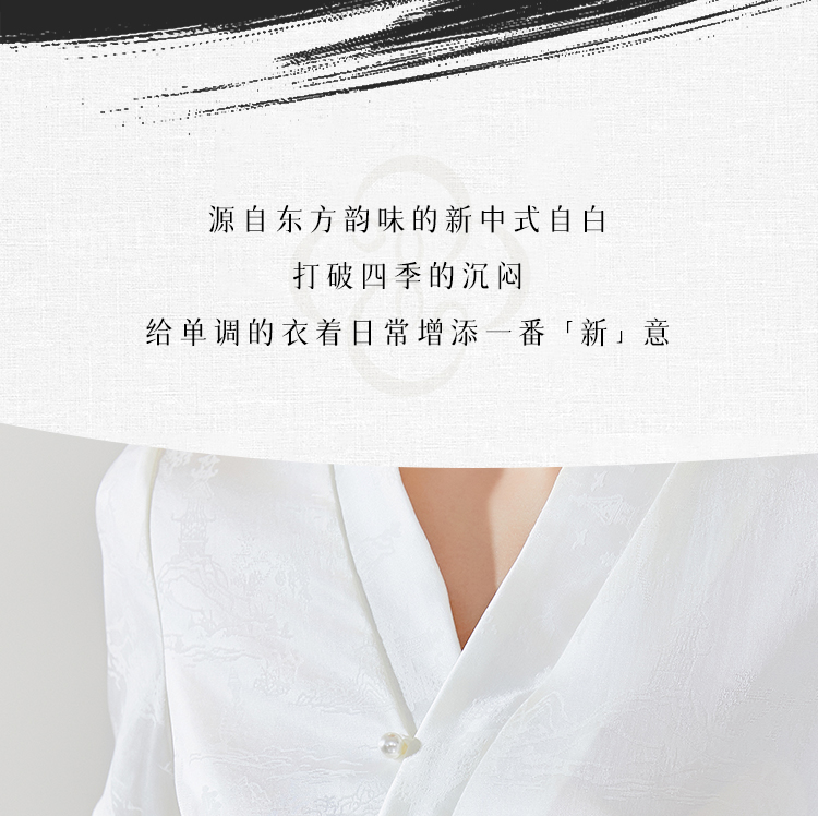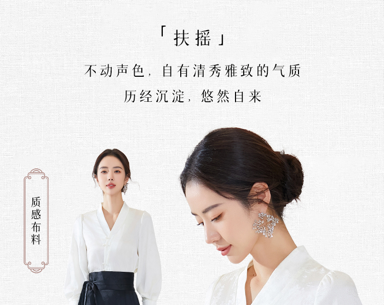 FUYAO扶摇 新中式交领上衣女白色提花珍珠扣衬衫新款国风改良汉服