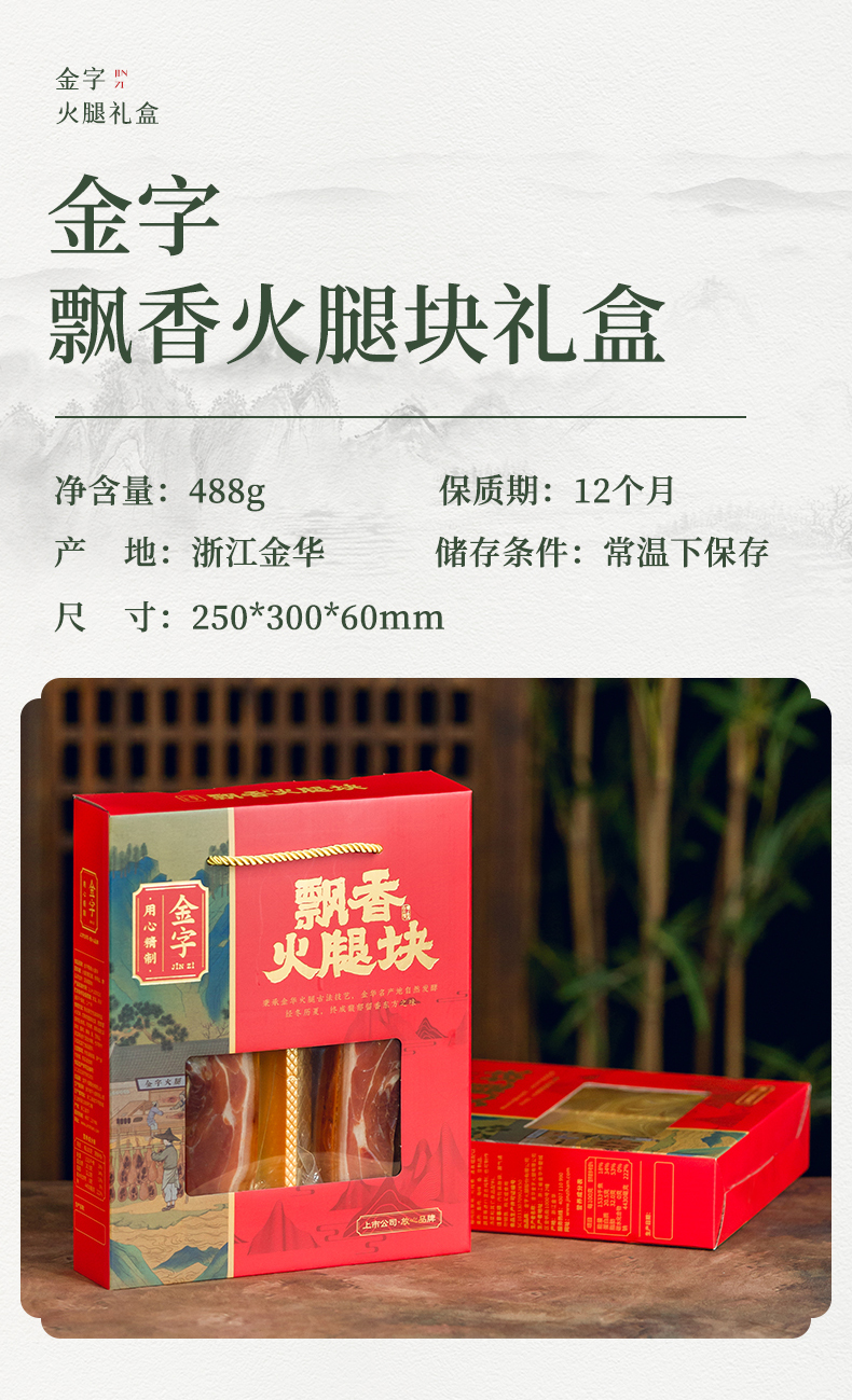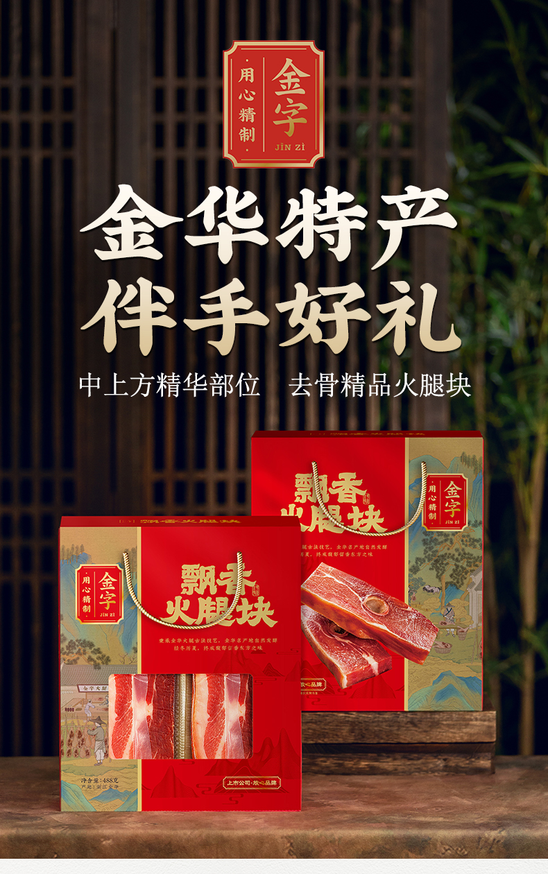 金字金华火腿礼盒488g非遗传承去骨火腿块