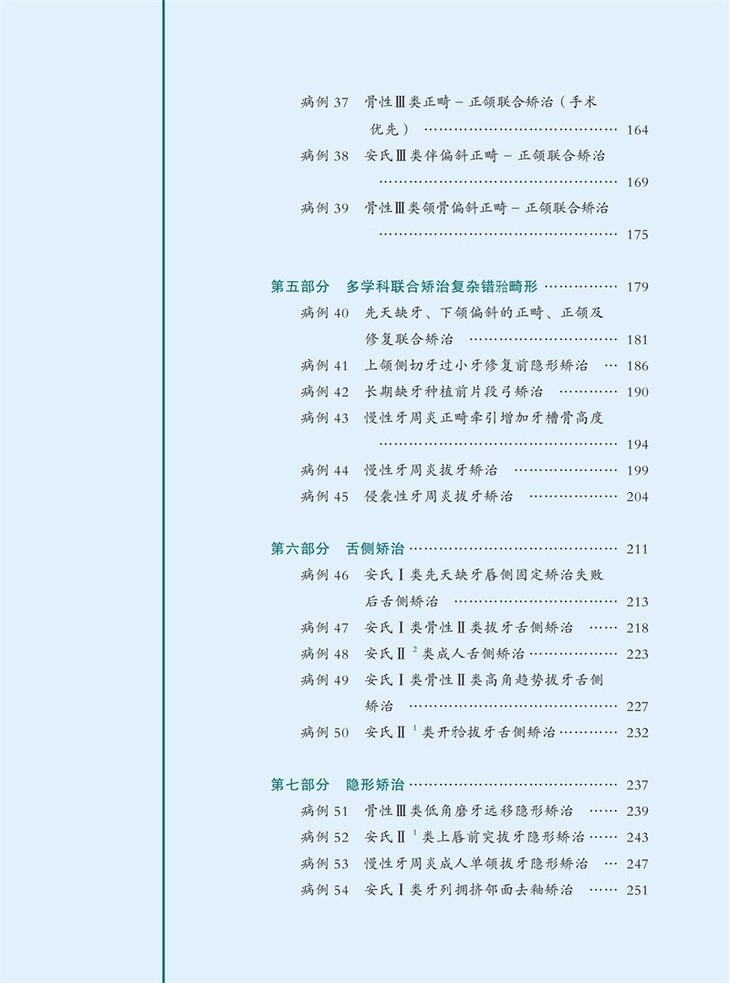 54例正畸经典病例,每例病例均包含检查、模型分析、诊断、治疗计划、弓丝序列、矫治结果及矫治体会等基础信息。