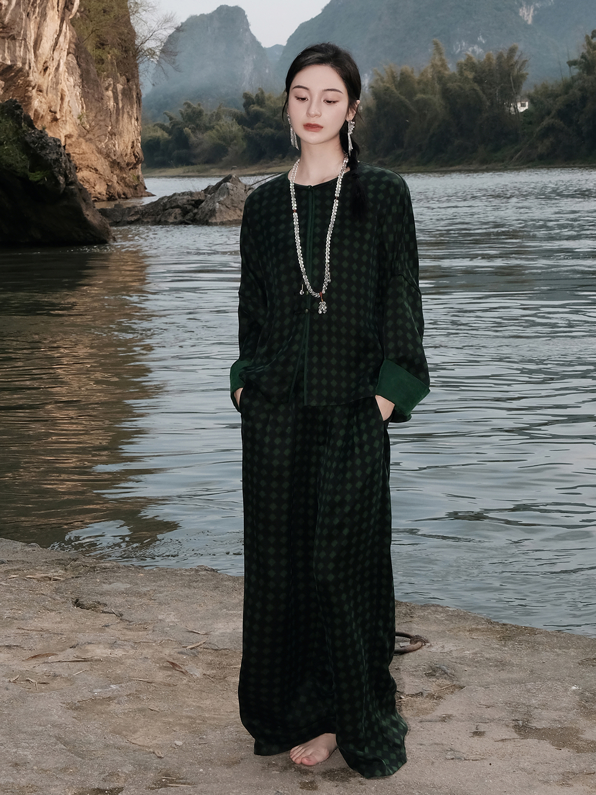 盛唐婧 |真丝重缎香云纱阔腿裤