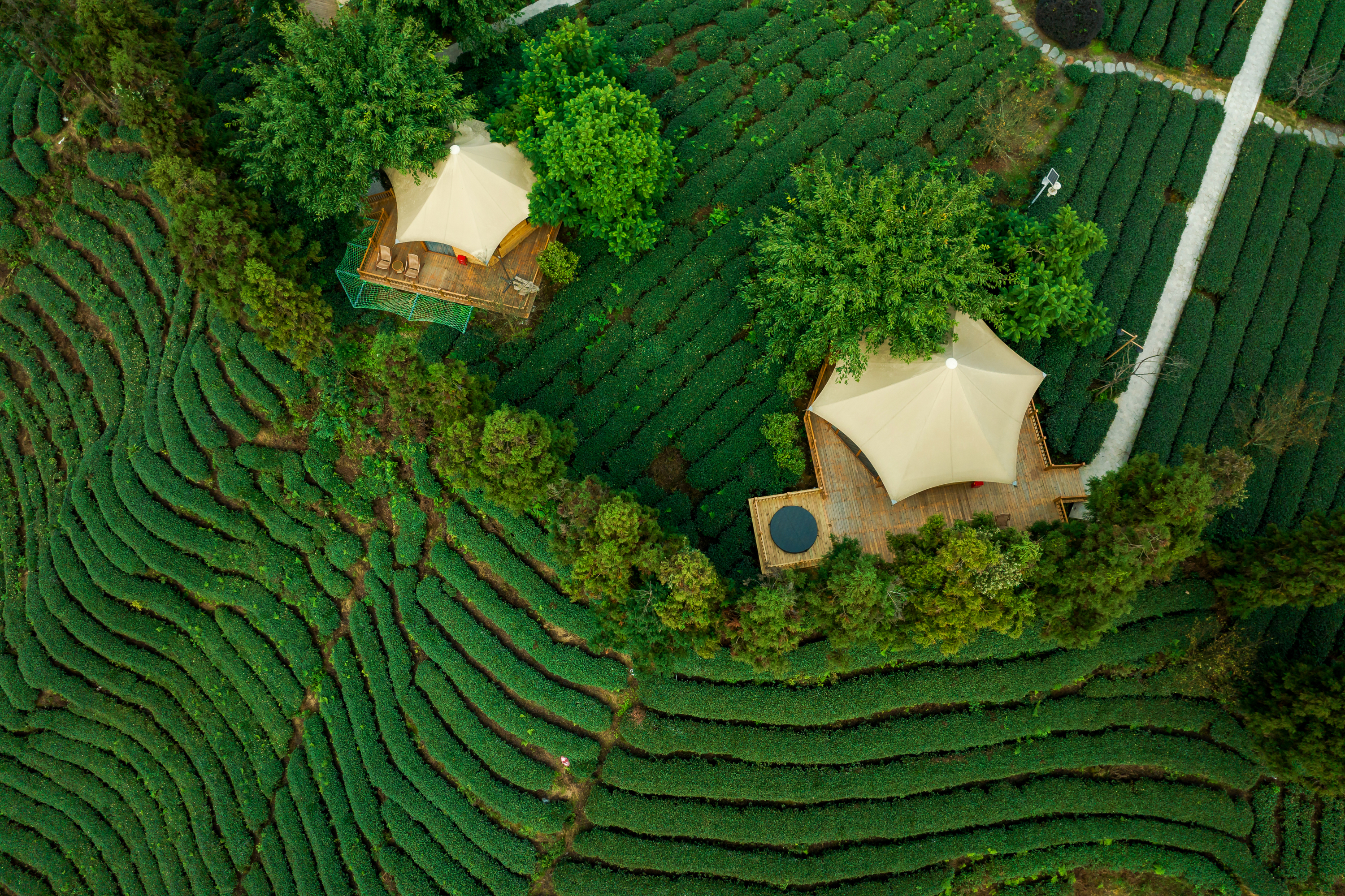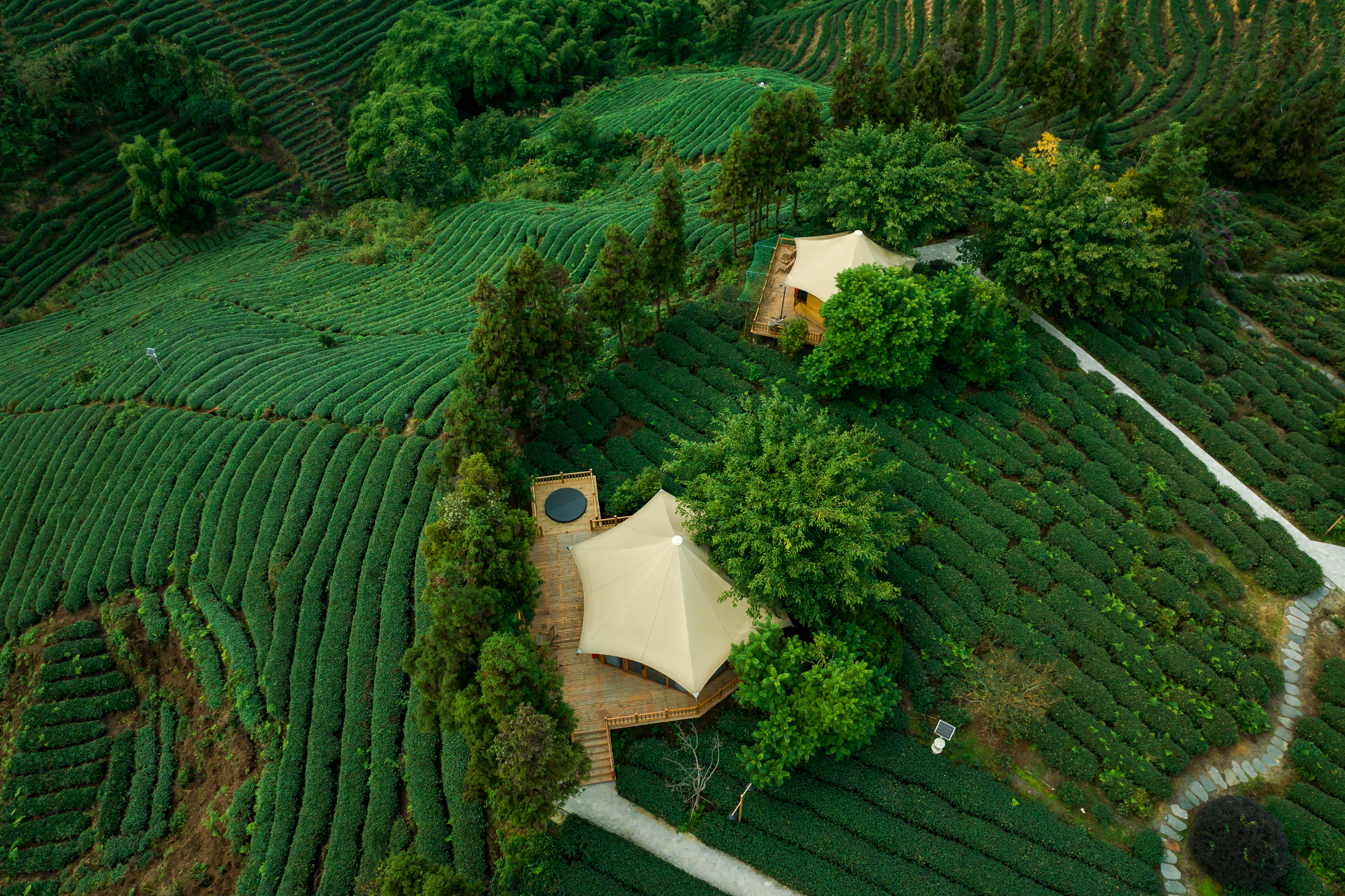 万亩茶园中的360°玻璃房子,伴随清新的茶香入梦,是不是会睡得更好!