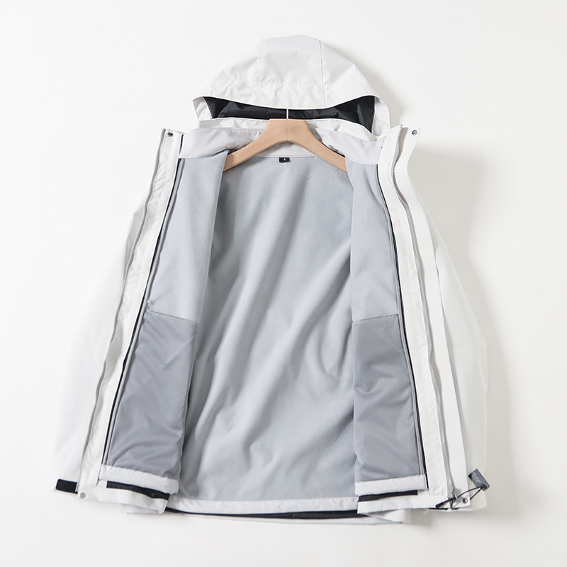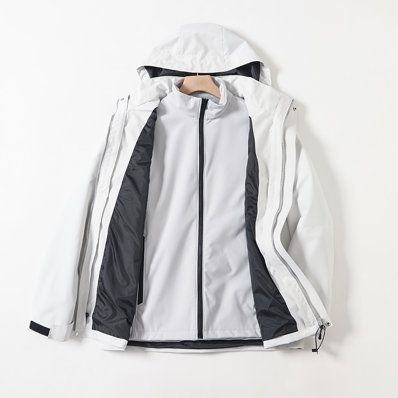 三合一内胆可拆卸,户外防风雨功能性冲锋外套+聚热锁温加绒软壳内胆。软壳内胆,比一般摇粒绒内胆更好,拆卸单穿更加有气质!春秋冬都可以驾驭!保暖效果好,一件300克含绒量的羽绒服!一件防风冲锋衣➕一件加绒软壳冲锋衣,