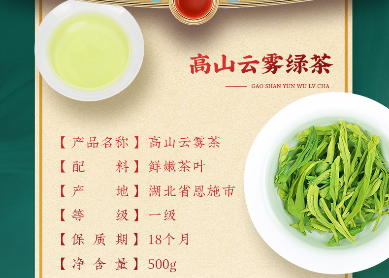 茶马世家高山云雾茶硒茶500g
