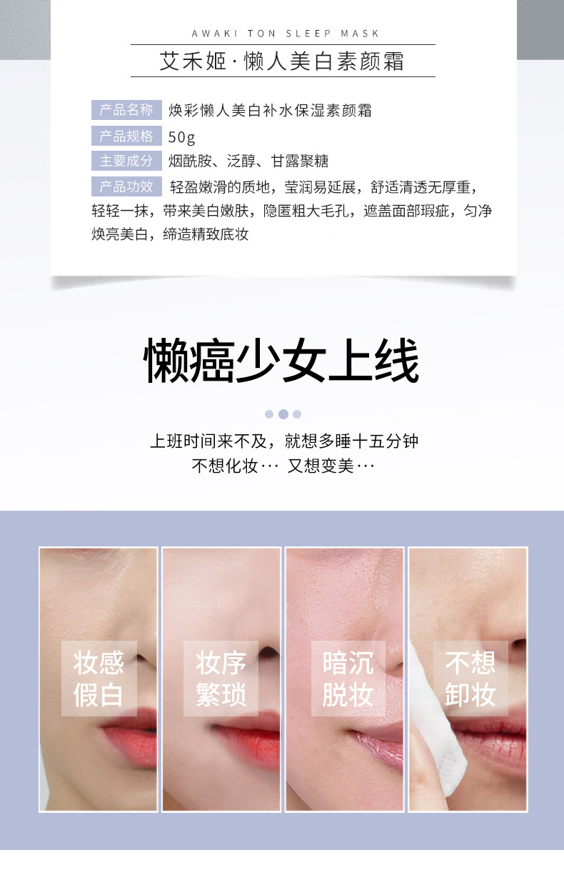 【素颜霜】焕彩保湿素颜霜提亮遮瑕裸妆滋润滋润懒人乳液面霜护肤艾禾姬
