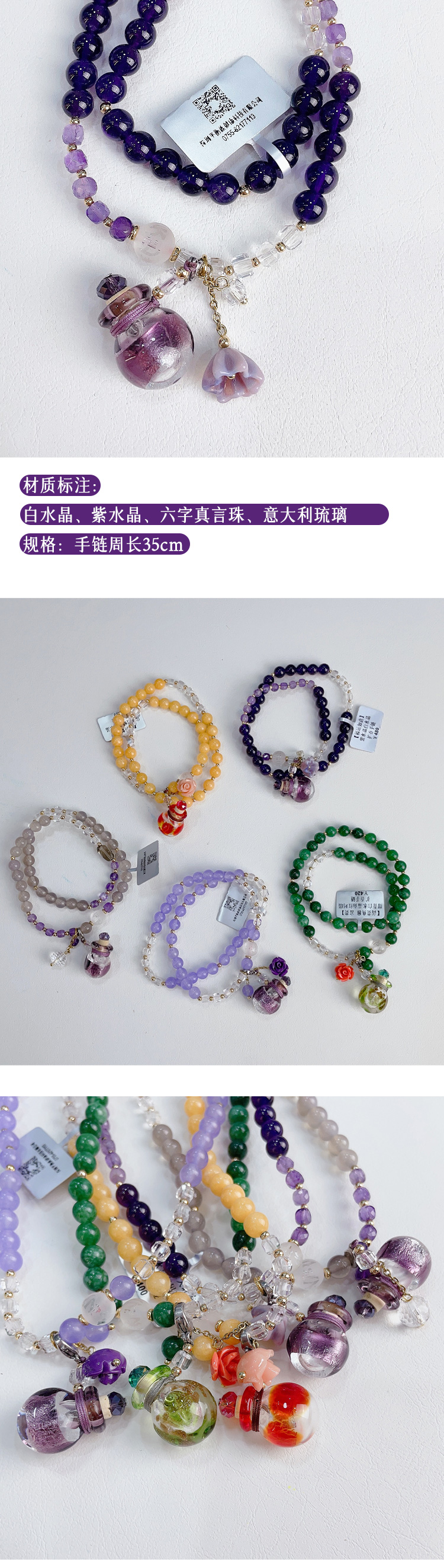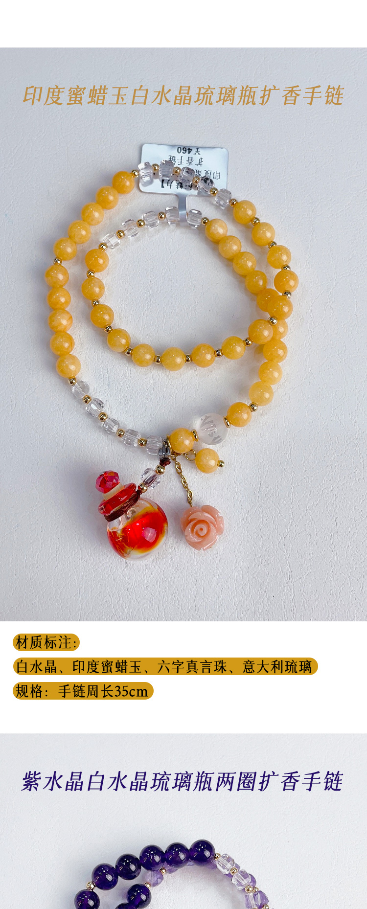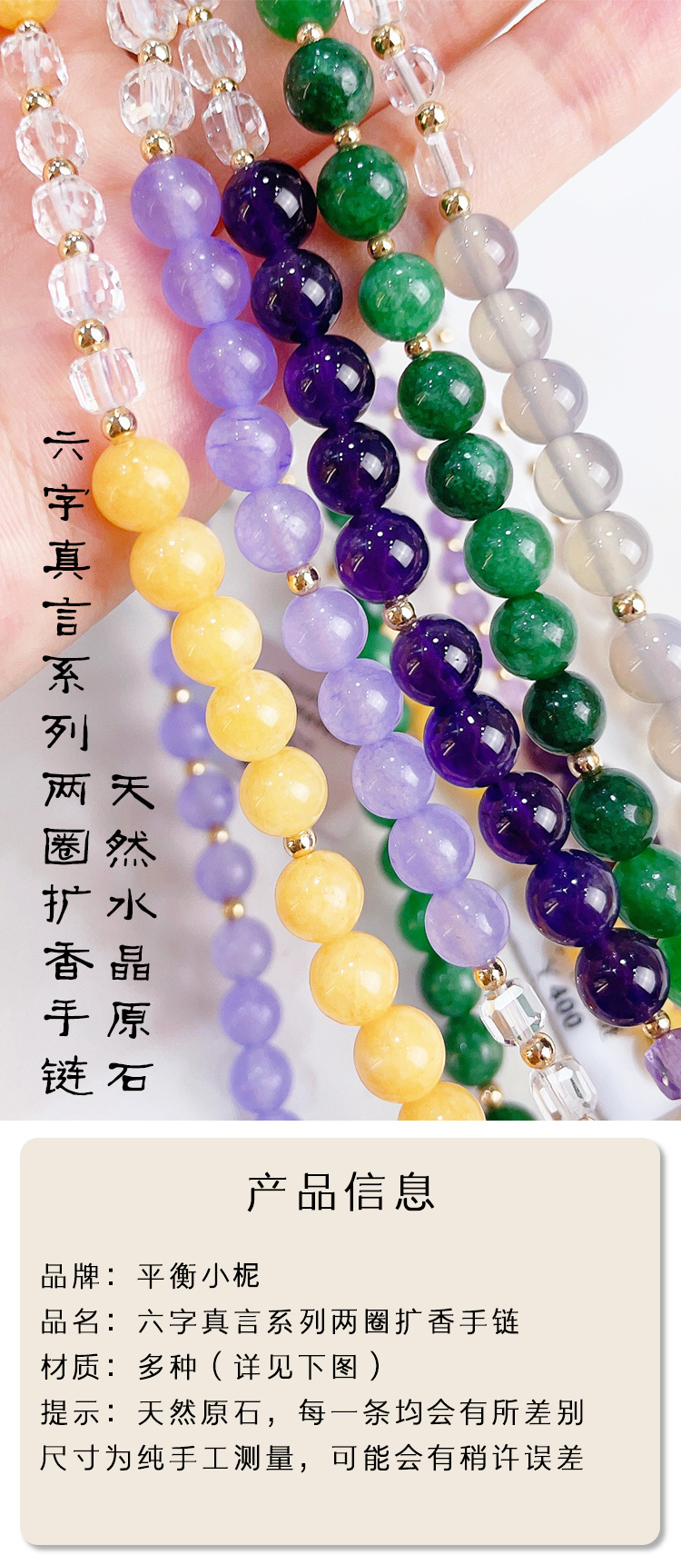 六字真言系列两圈扩香手链 多款可选 天然水晶原石