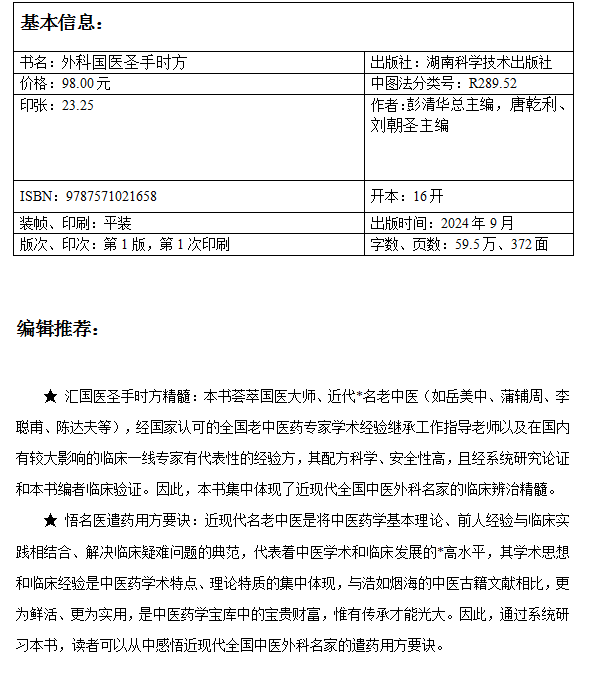名老中医临证必选方剂系列丛书:外科国医圣手时方 汇国医圣手时方精髓 悟名医遣药用方要诀
