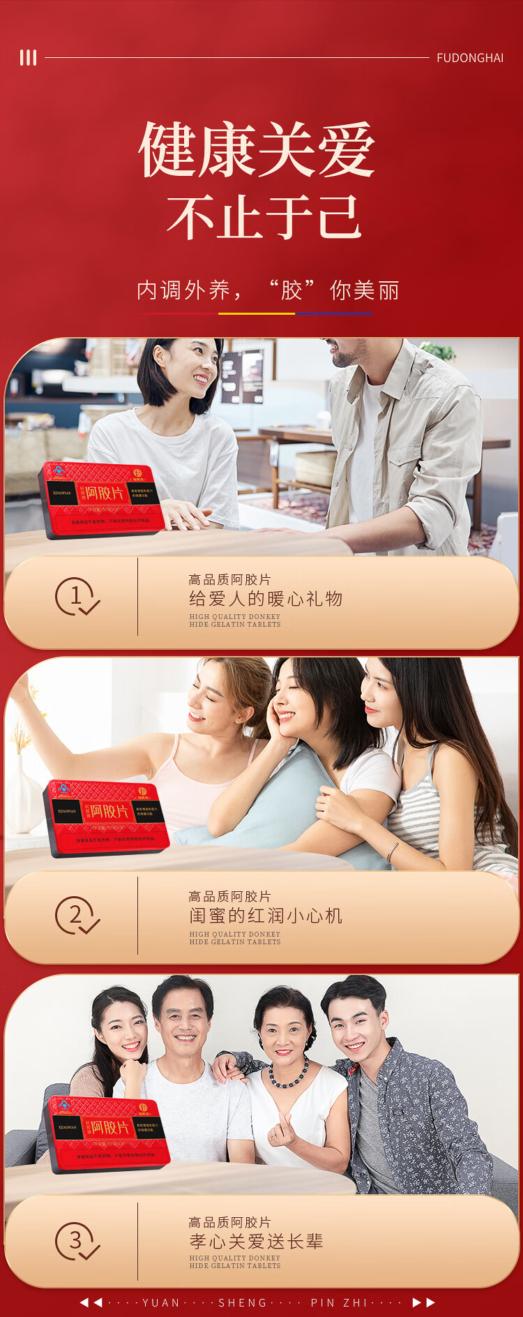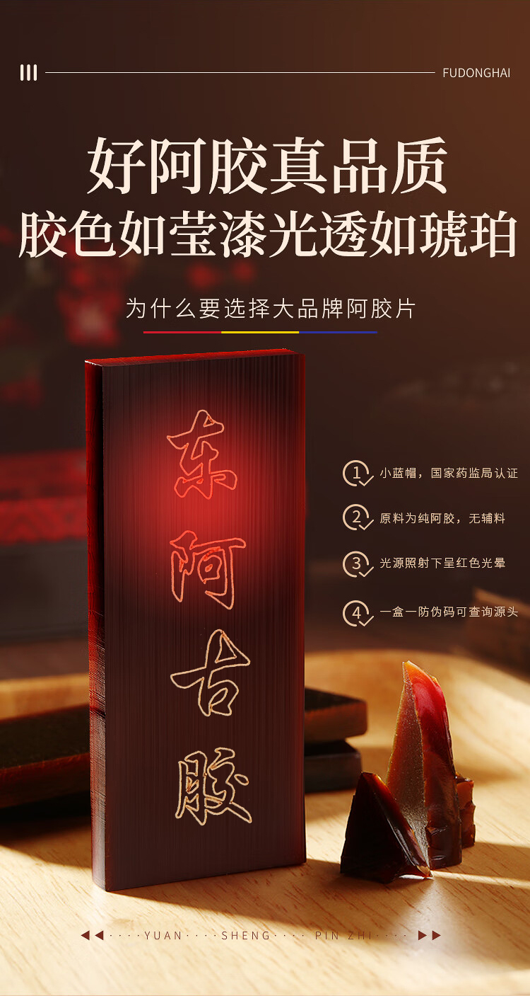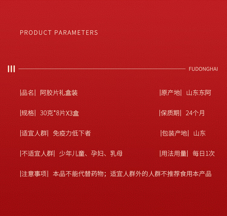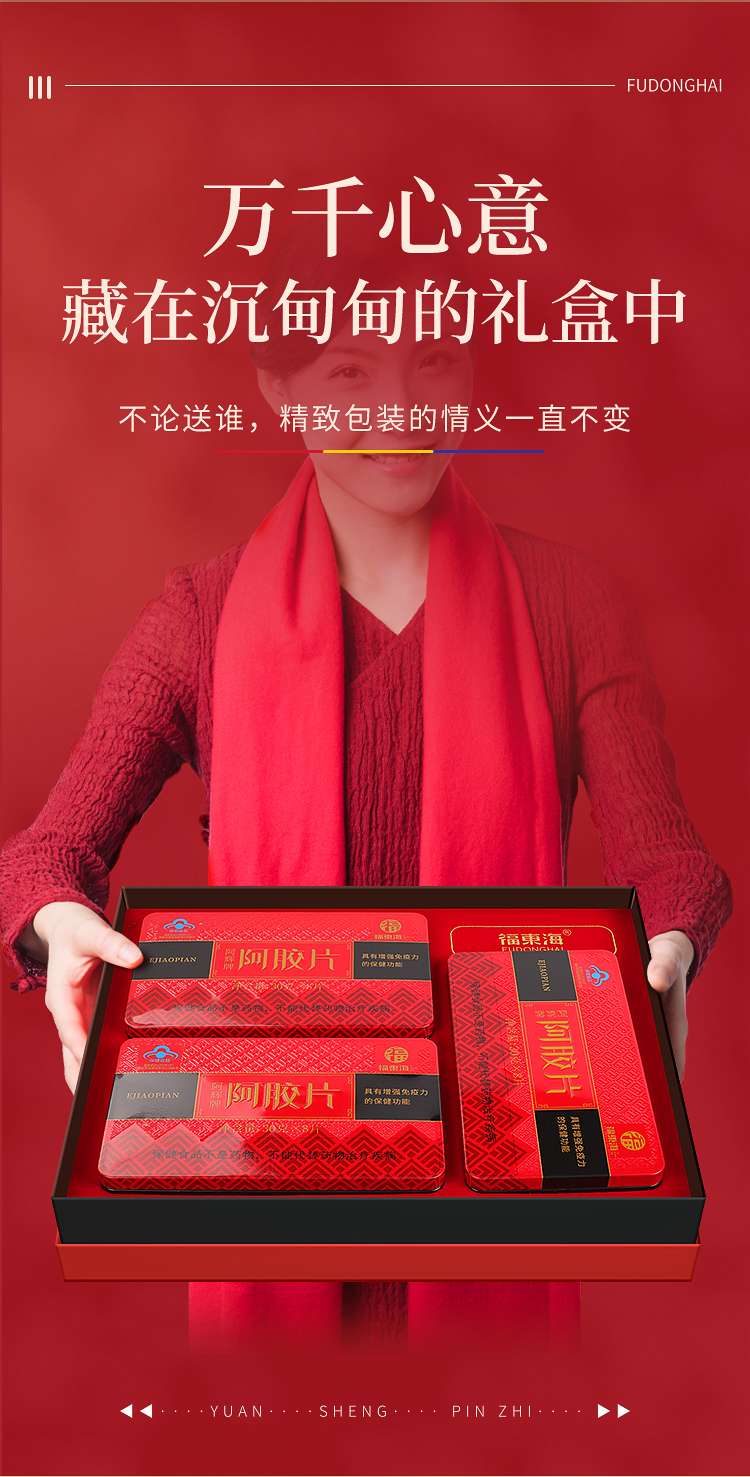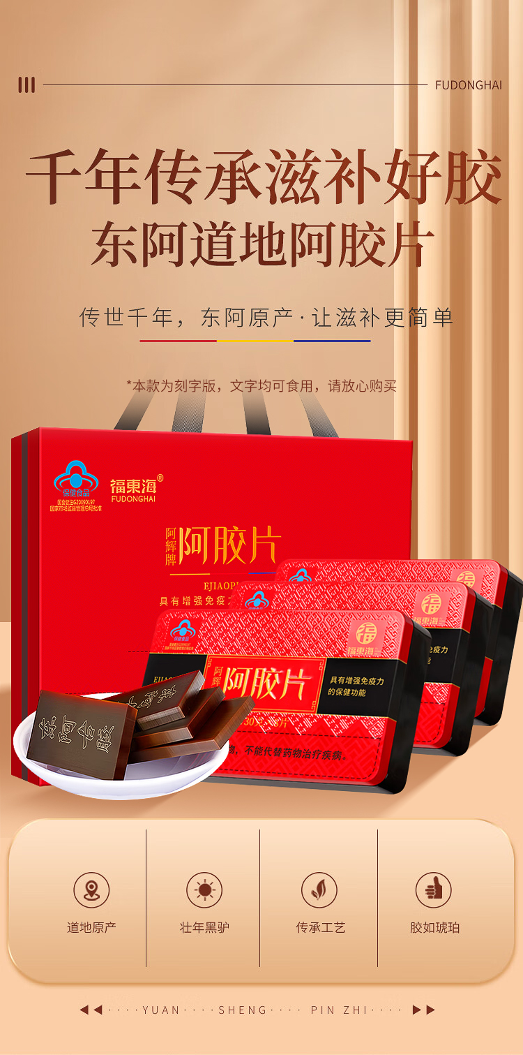 福东海 阿胶片礼盒(240克*3盒) 山东东阿产 驴胶驴皮阿姣阿胶块 熬制阿胶膏原料 女人滋补送礼