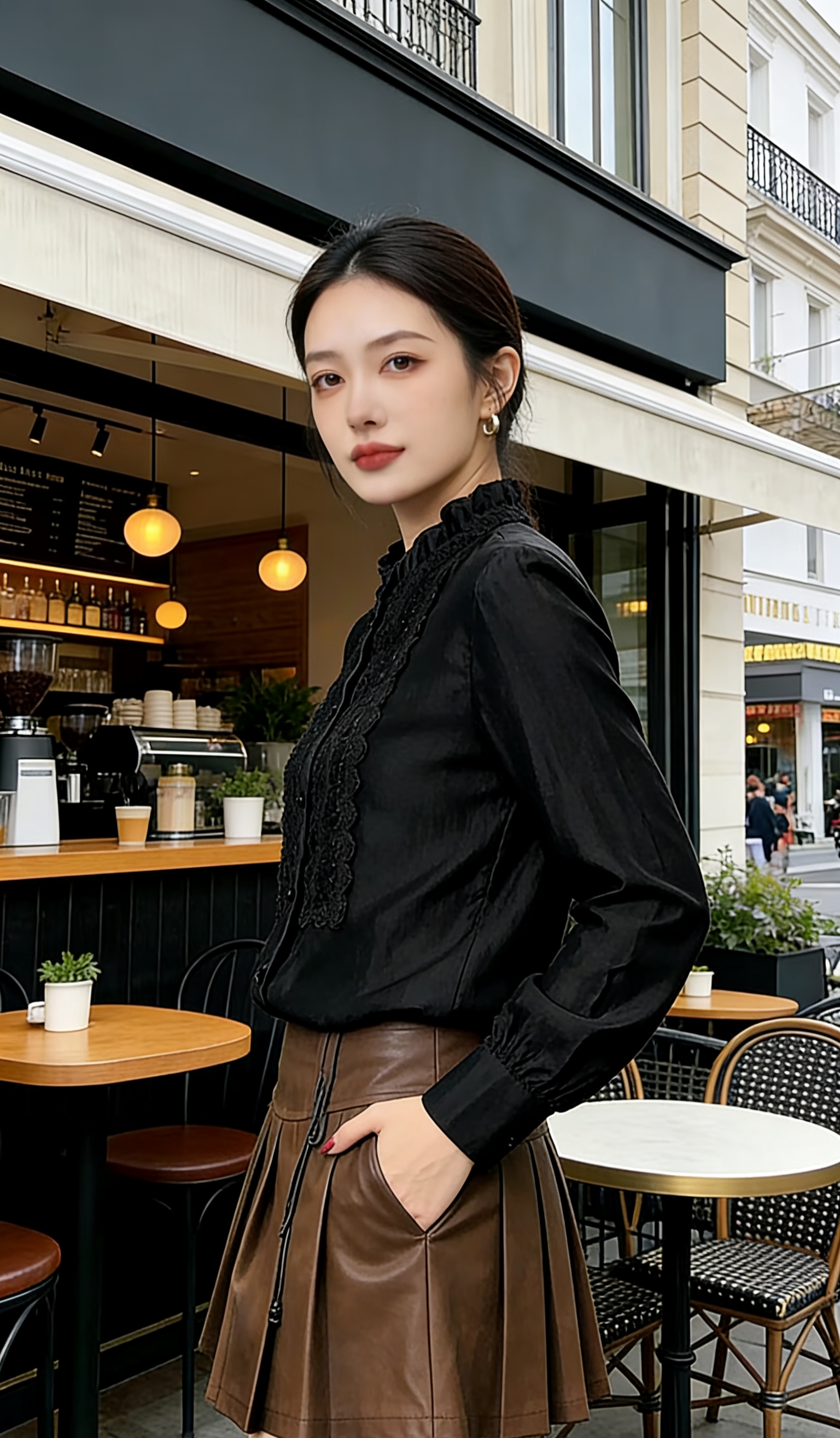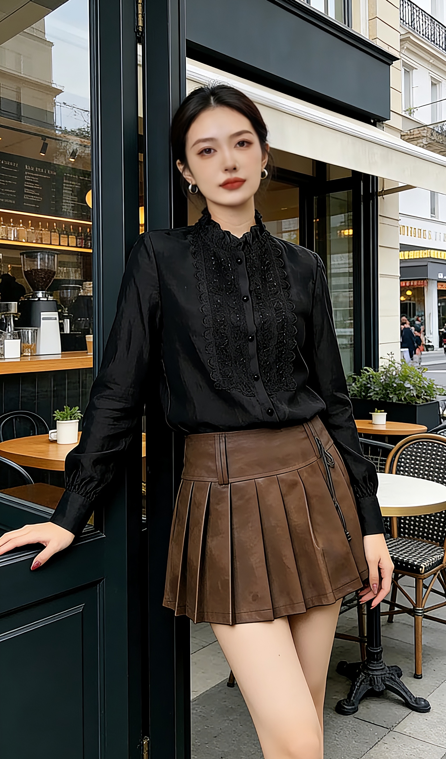 伯妮斯茵 | 气质优雅 长袖衬衫 蕾丝拼接立领 垂感缎面 通勤约会 SC1F02