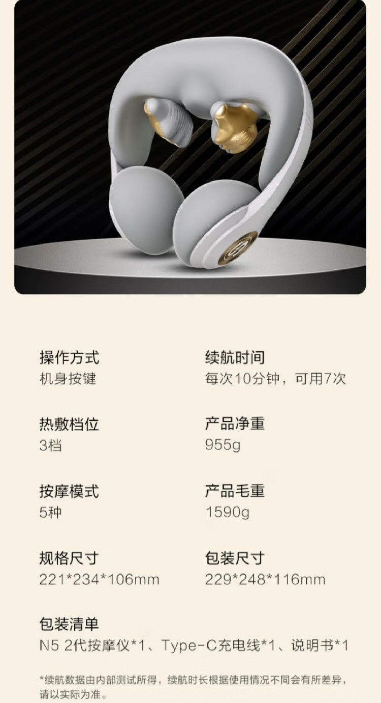 SKG 揉捏颈椎按摩仪 N5系列2代月光白颈部按摩