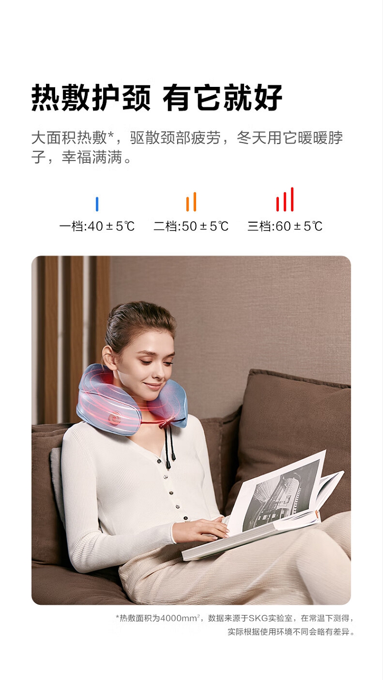 SKG 揉捏颈椎按摩仪 N5系列2代月光白颈部按摩仪脖子肩颈颈椎护颈仪热敷物理环颈揉捏+SKG 热敷枕 BP3(无按摩)【HSZG10.0】