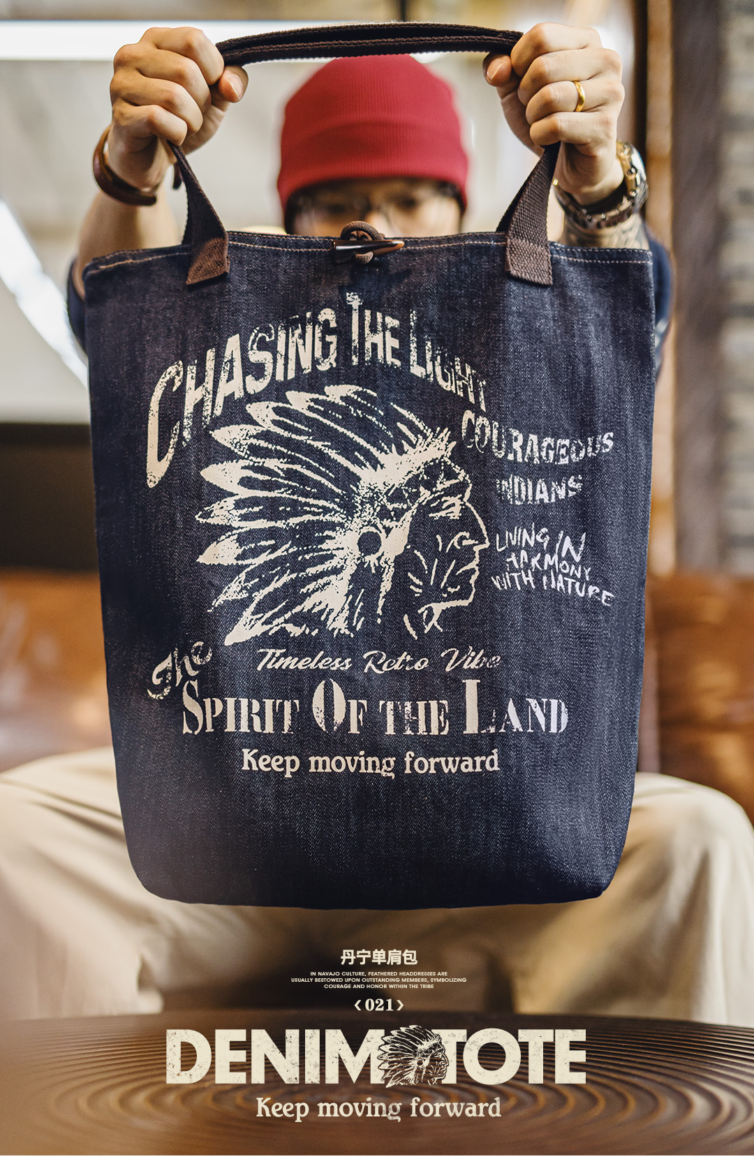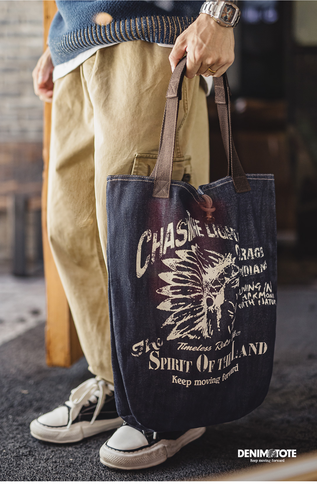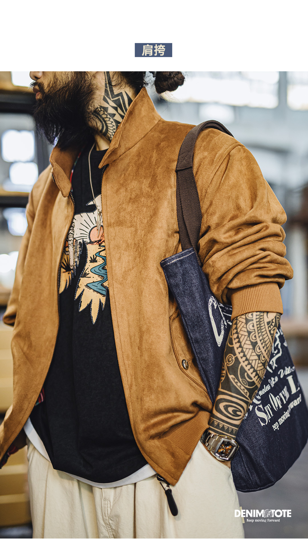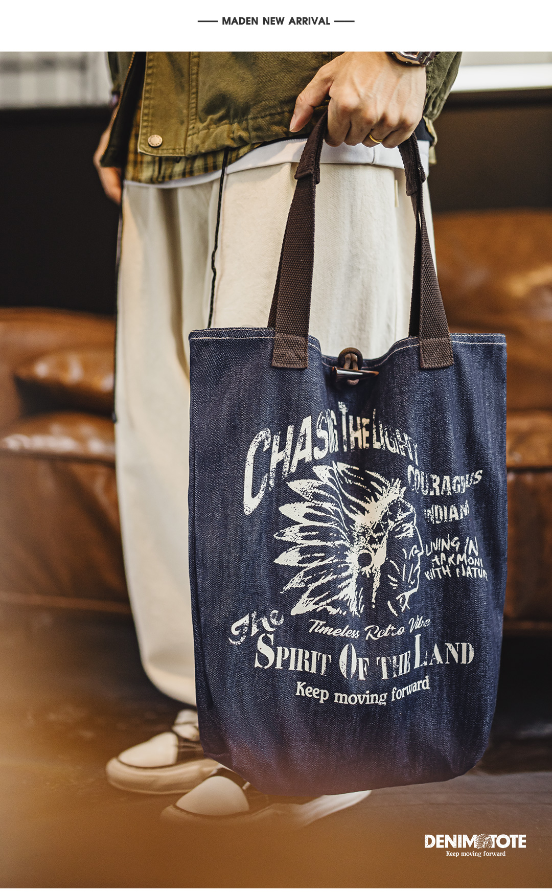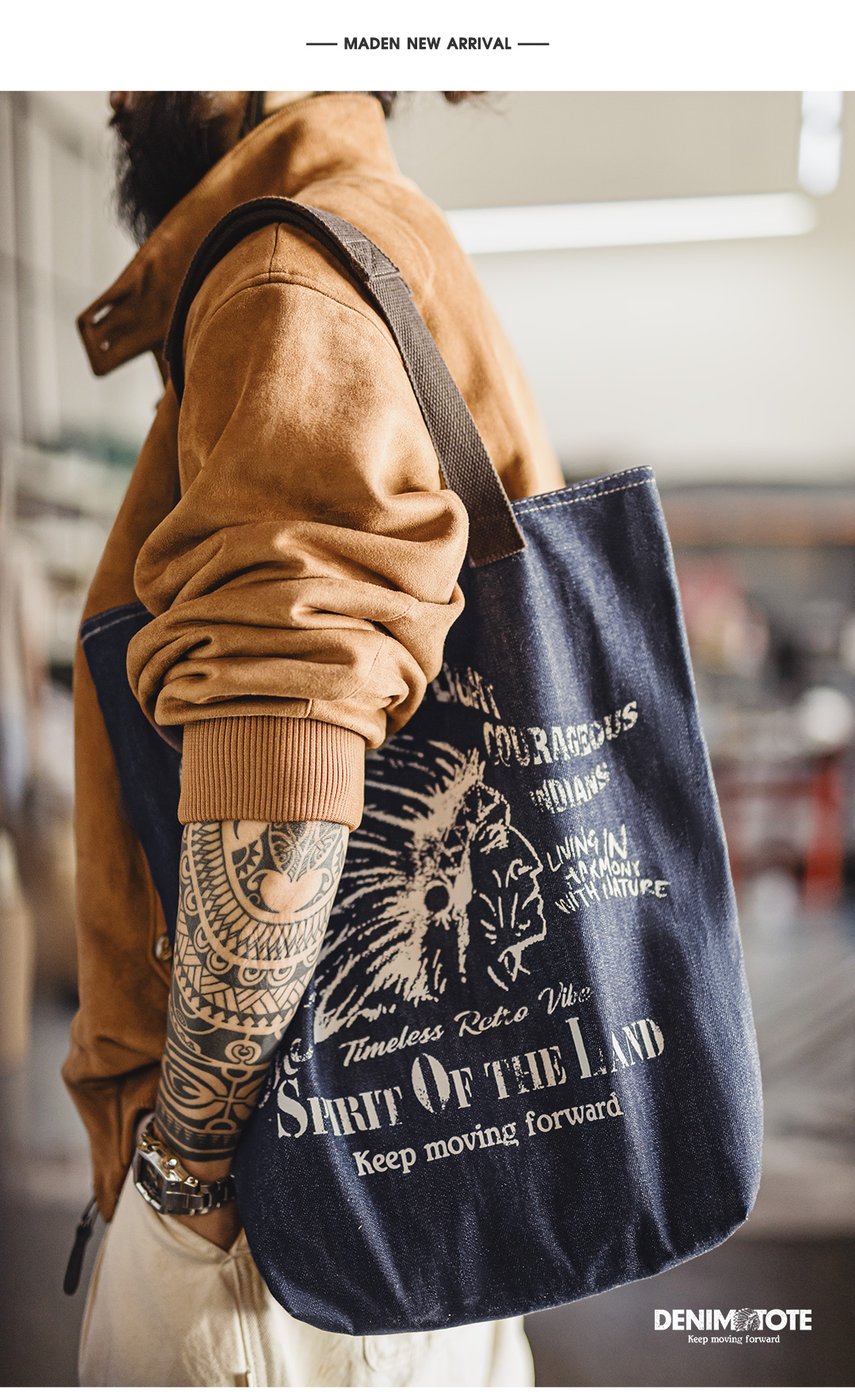马登工装美式复古牛仔大容量托特包丹宁通勤单肩包做旧手提包包男