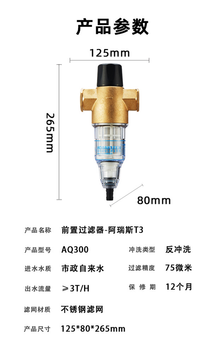 艾可丽 | 阿瑞斯系列-T3 前置过滤器 虹吸反冲洗 不锈钢材质
