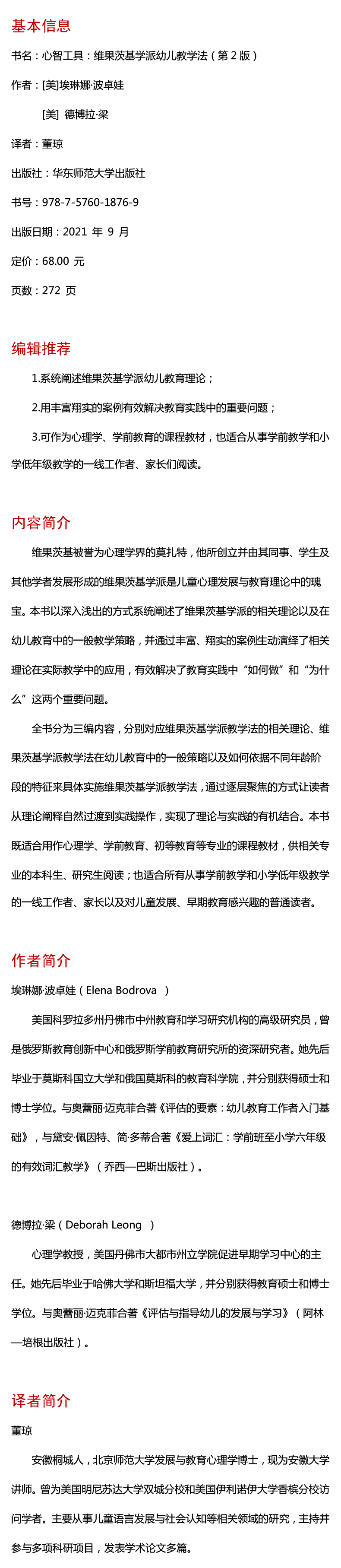 心智工具 维果茨基学派幼儿教学法 第2版 埃琳娜·波卓娃 著 心理学经典译丛 儿童发展 早期教育 正版 华东师范大学出版社
