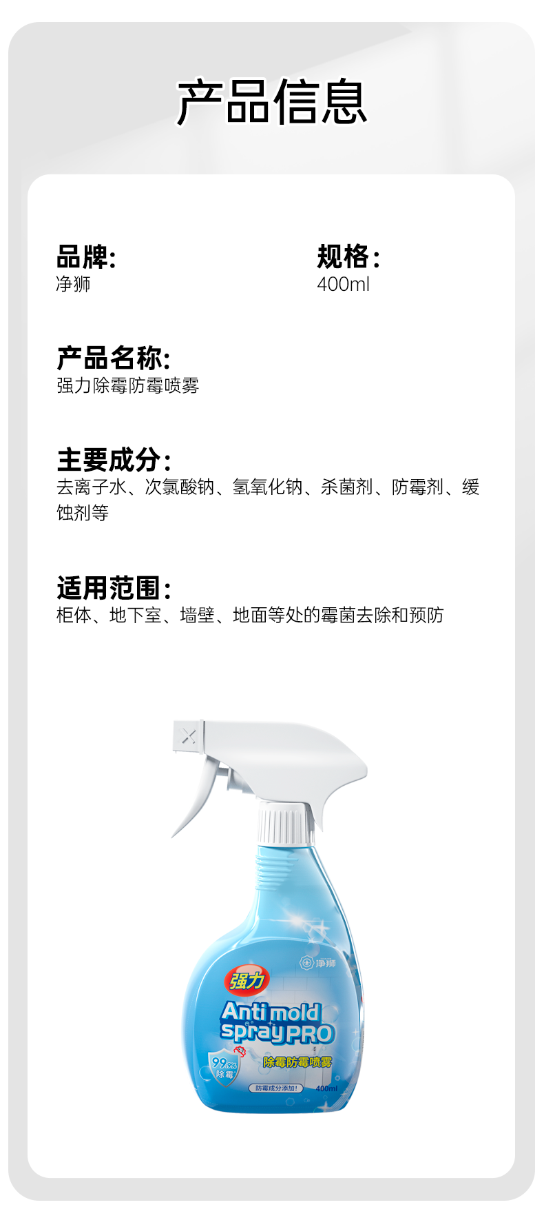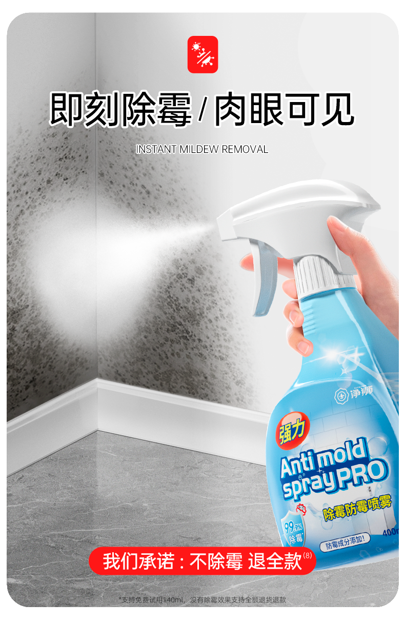 【清除、预防 一喷搞定】净狮除霉防霉喷雾400ML 成分安全 双效喷枪多场景使用