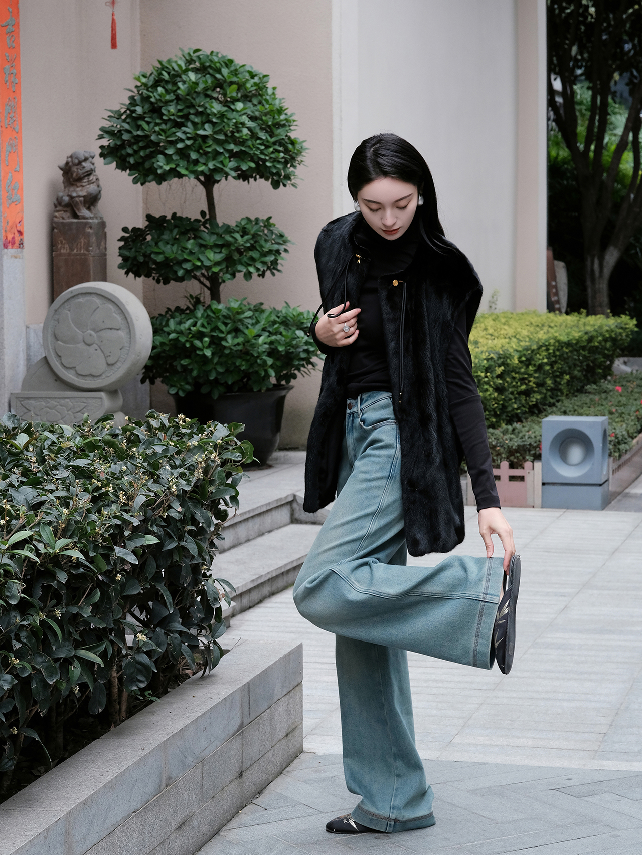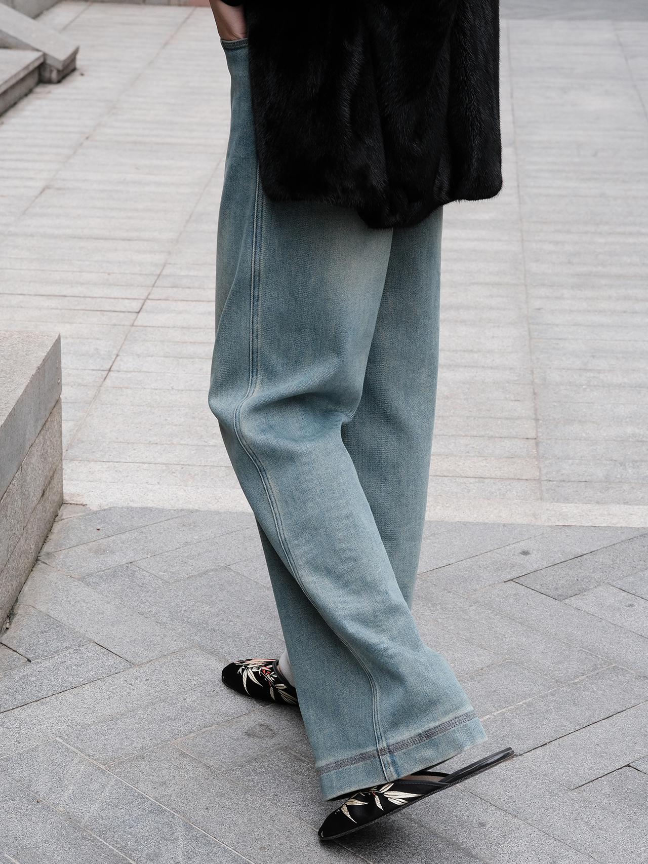盛唐婧|爆款薄绒直筒牛仔裤&手拿包(粉色丝绒)