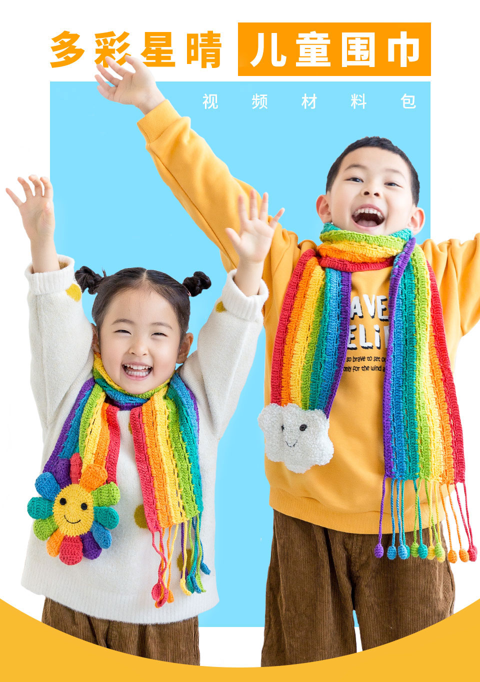 苏苏姐家多彩星晴儿童围巾手工diy编织毛线团织围巾打发时间