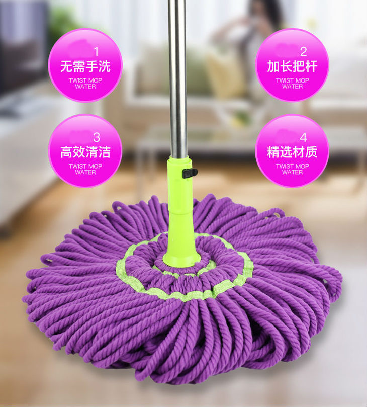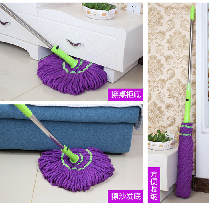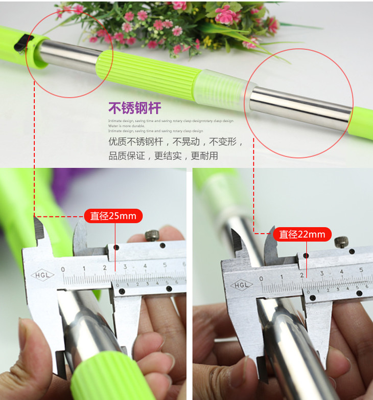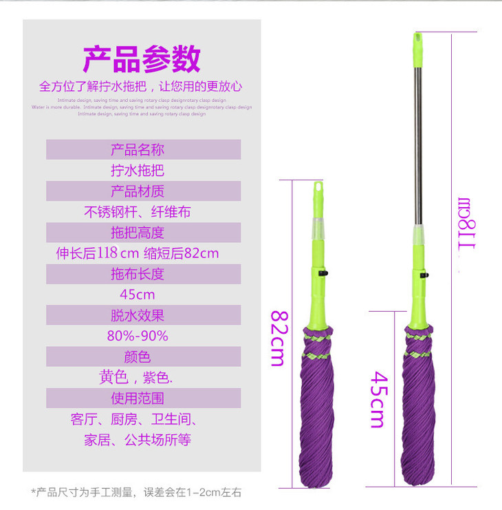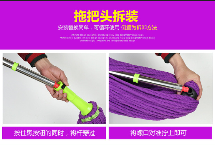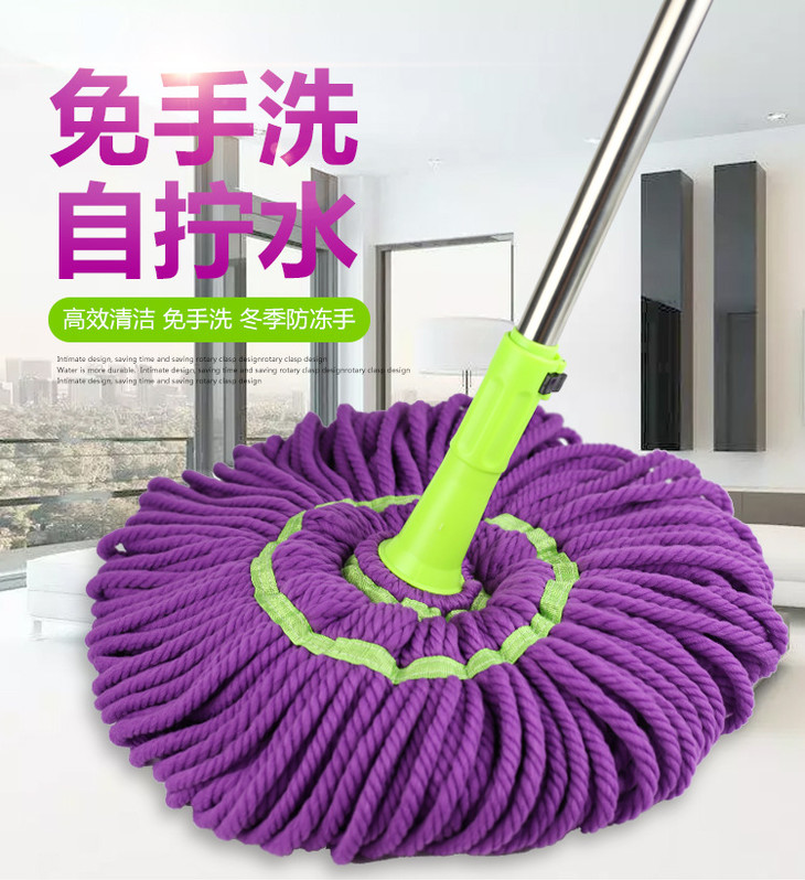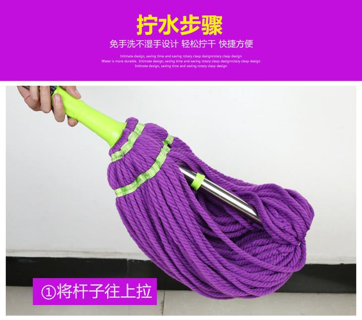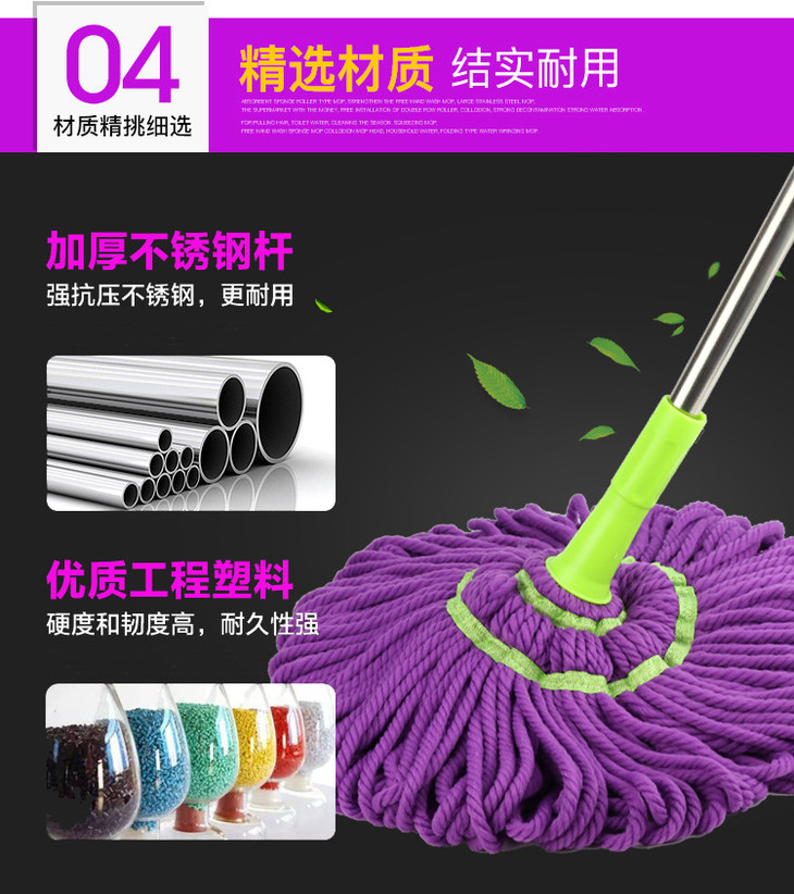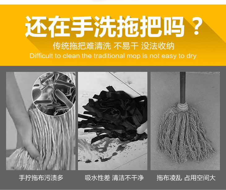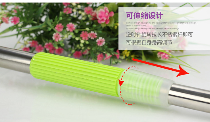 【居家日用】。免手洗拖把 不锈钢伸缩自拧水旋转拖把 家用懒人拖把头