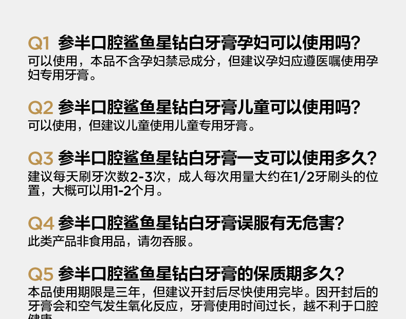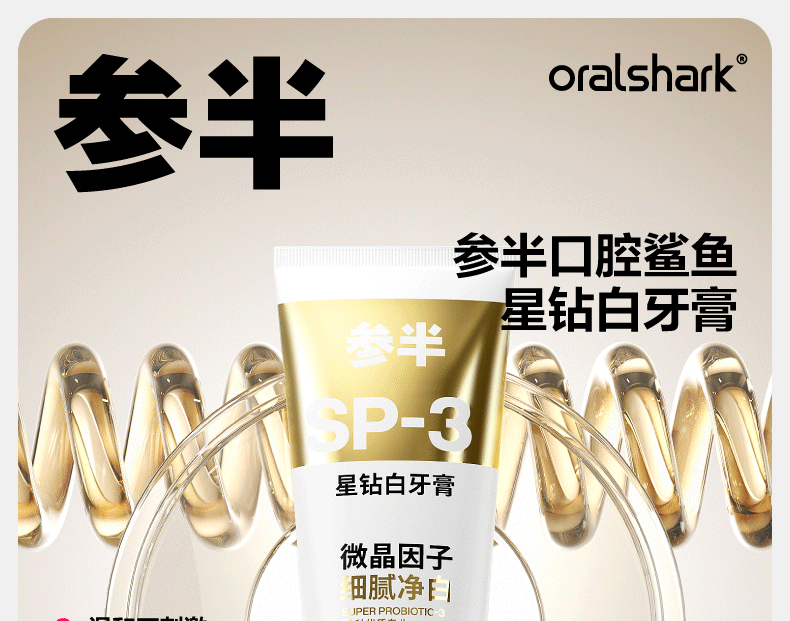 参半Oralshark SP-3星钻白牙膏100g【买就送牙刷*2】