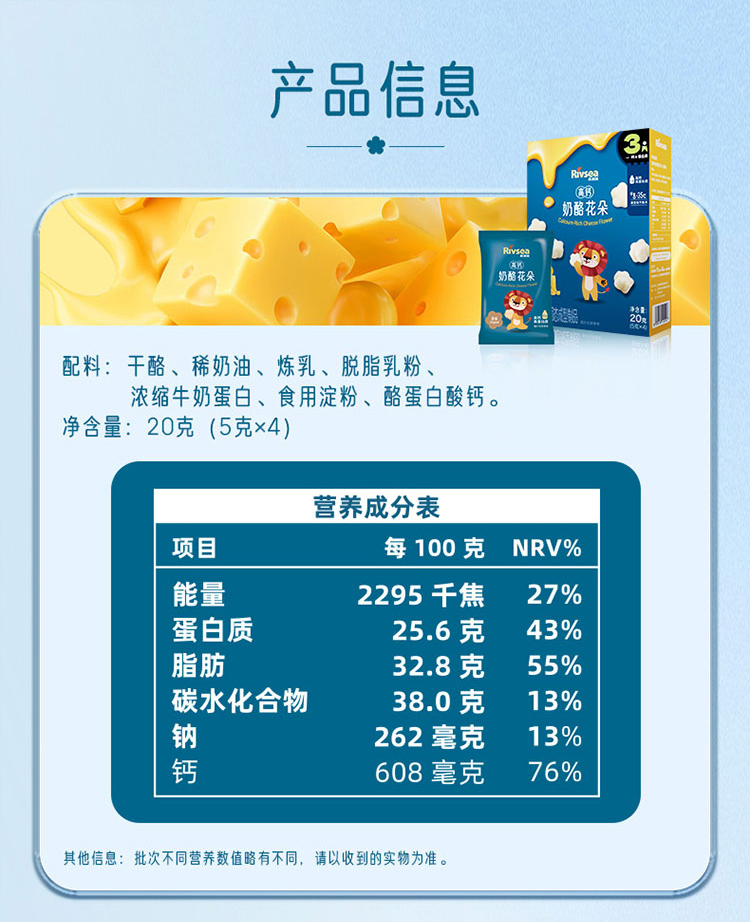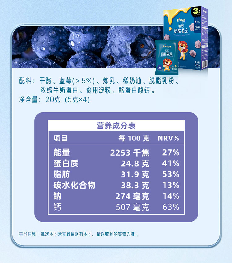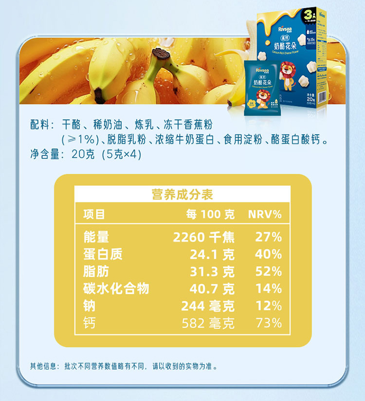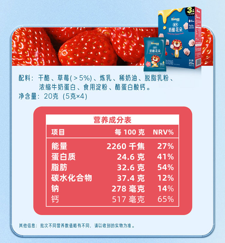 禾泱泱高钙奶酪花朵原味/香蕉味/蓝莓味/草莓味20g(5g*4)